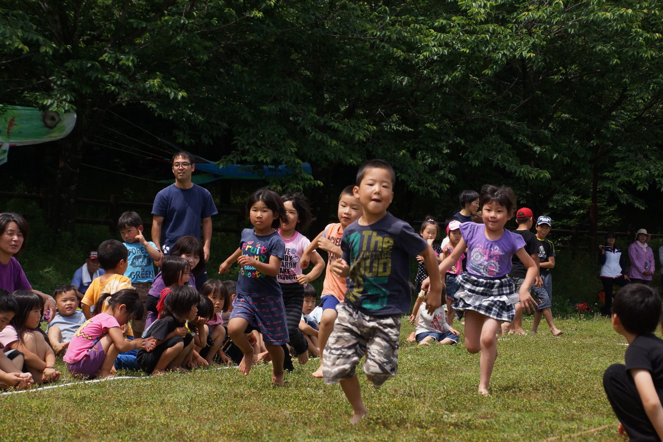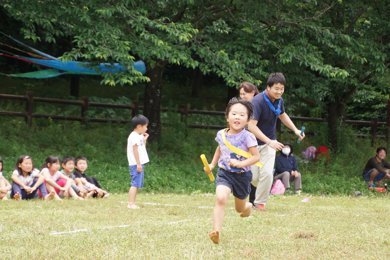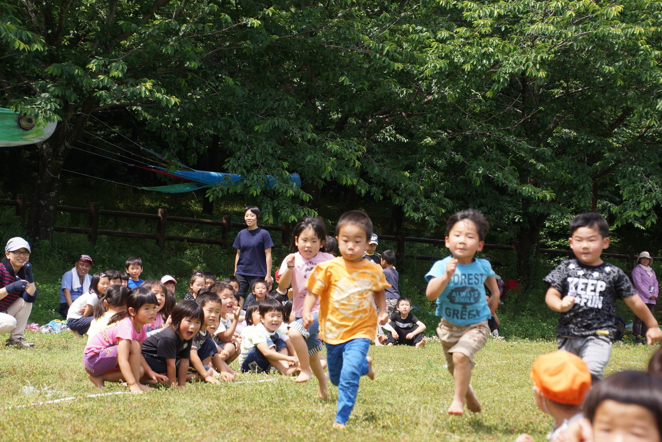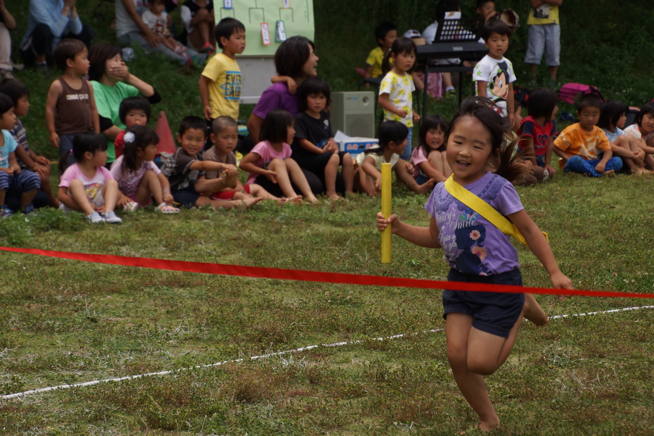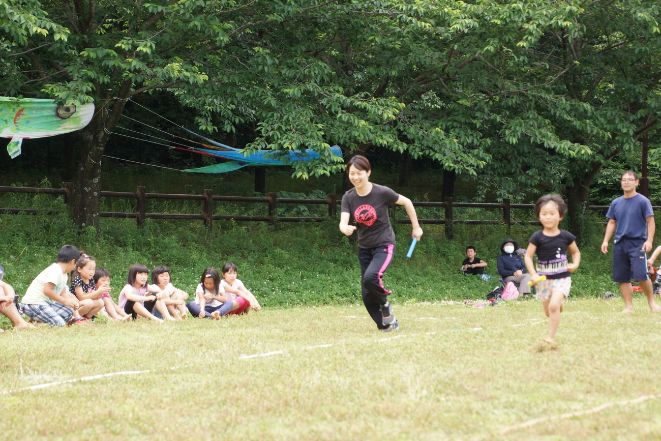 最後は年長ぞう組さんの親子リレー対決子どもチーム 勝利!!