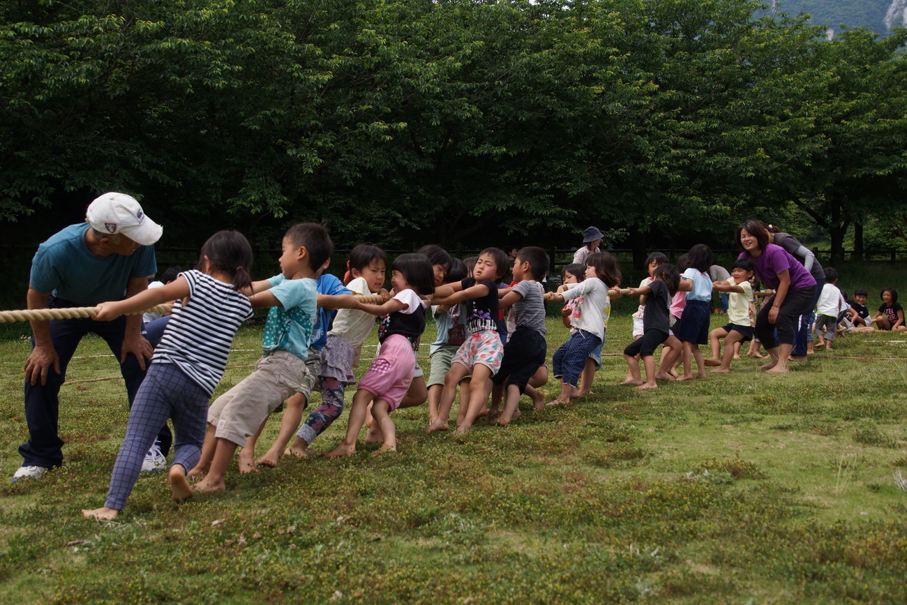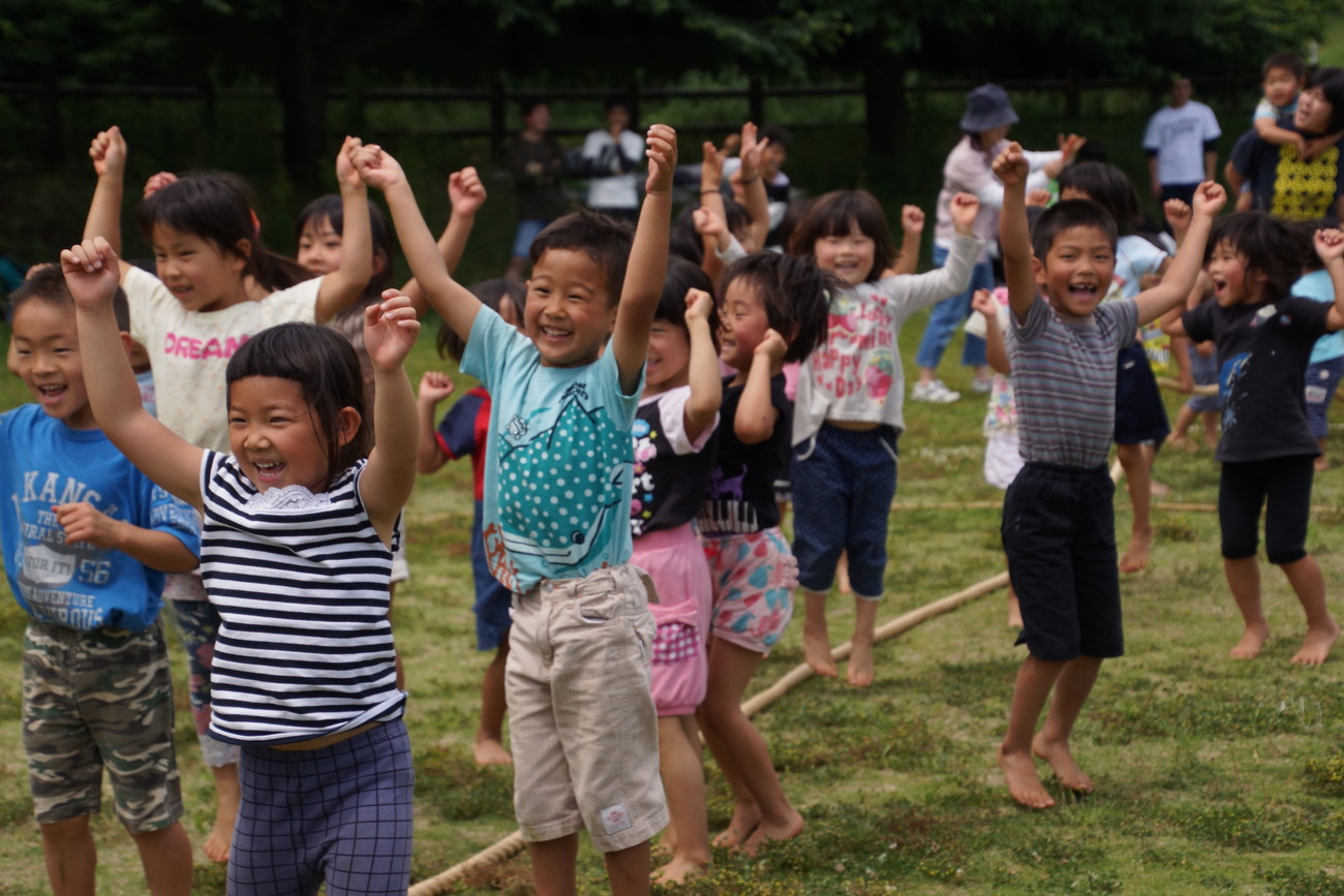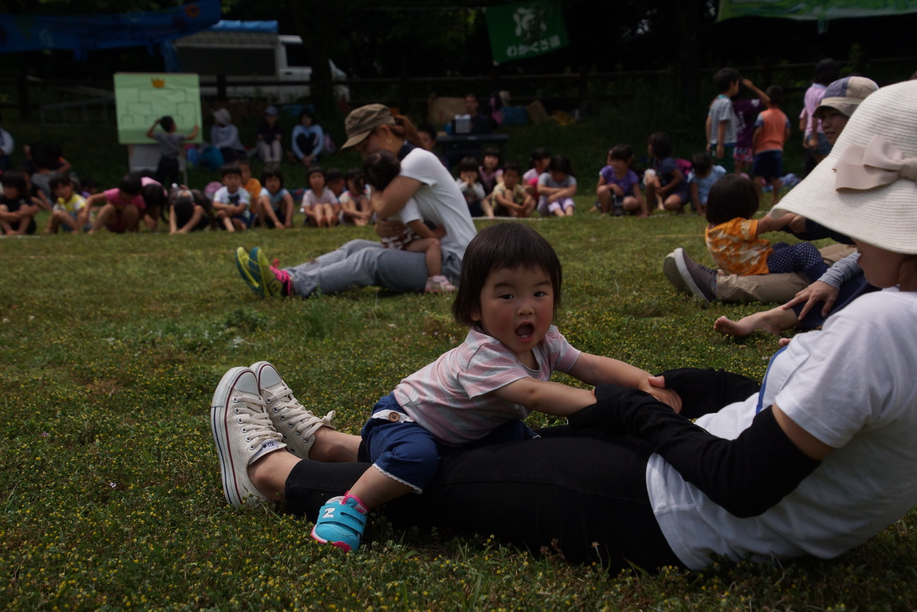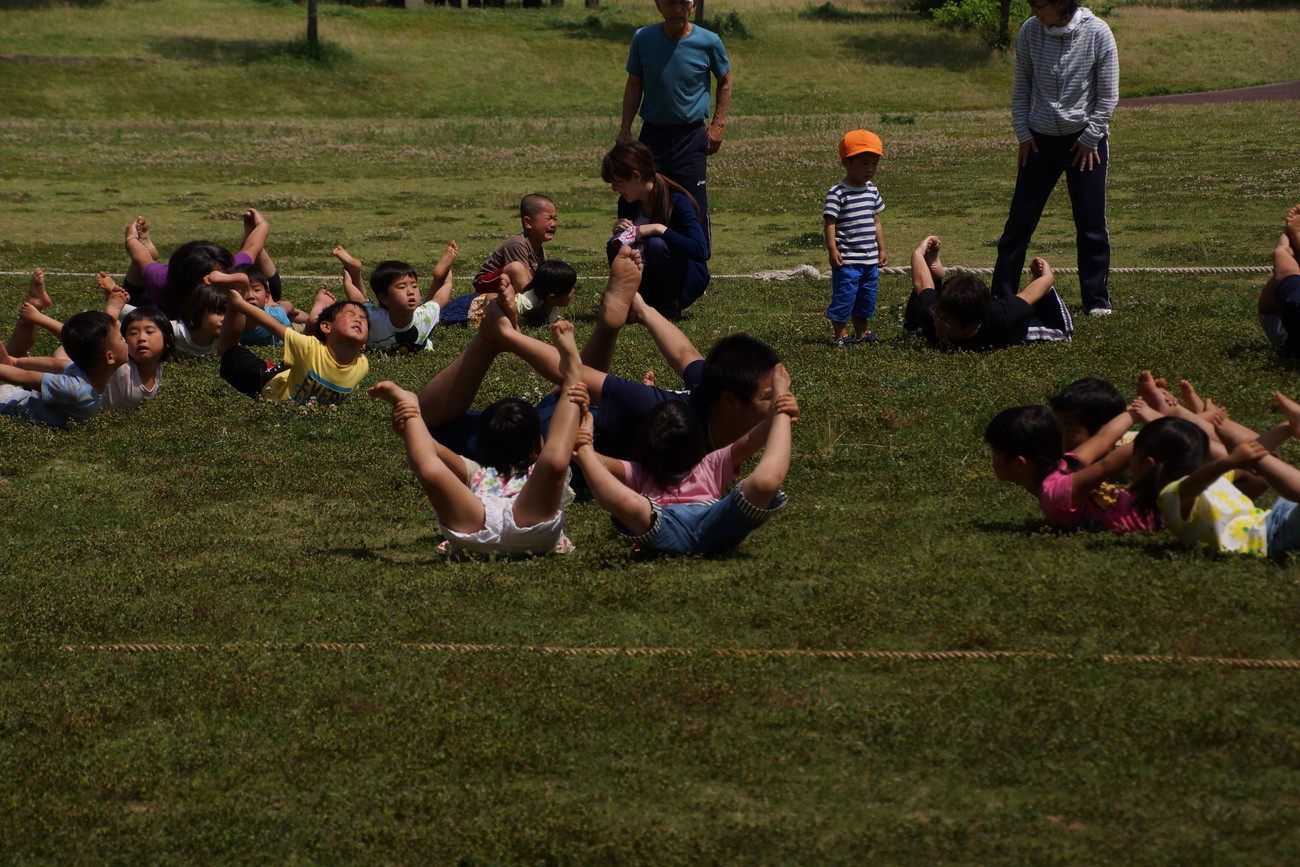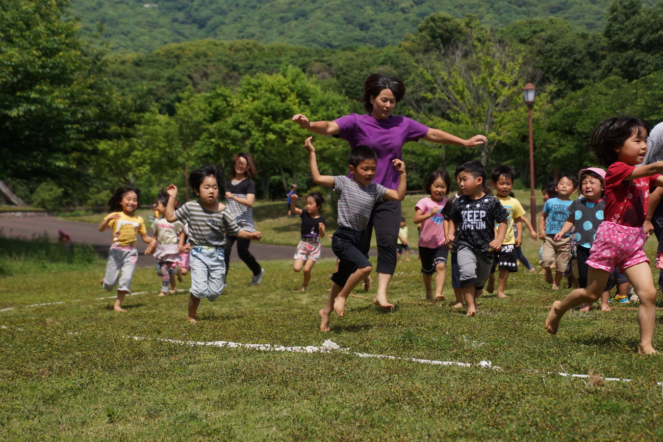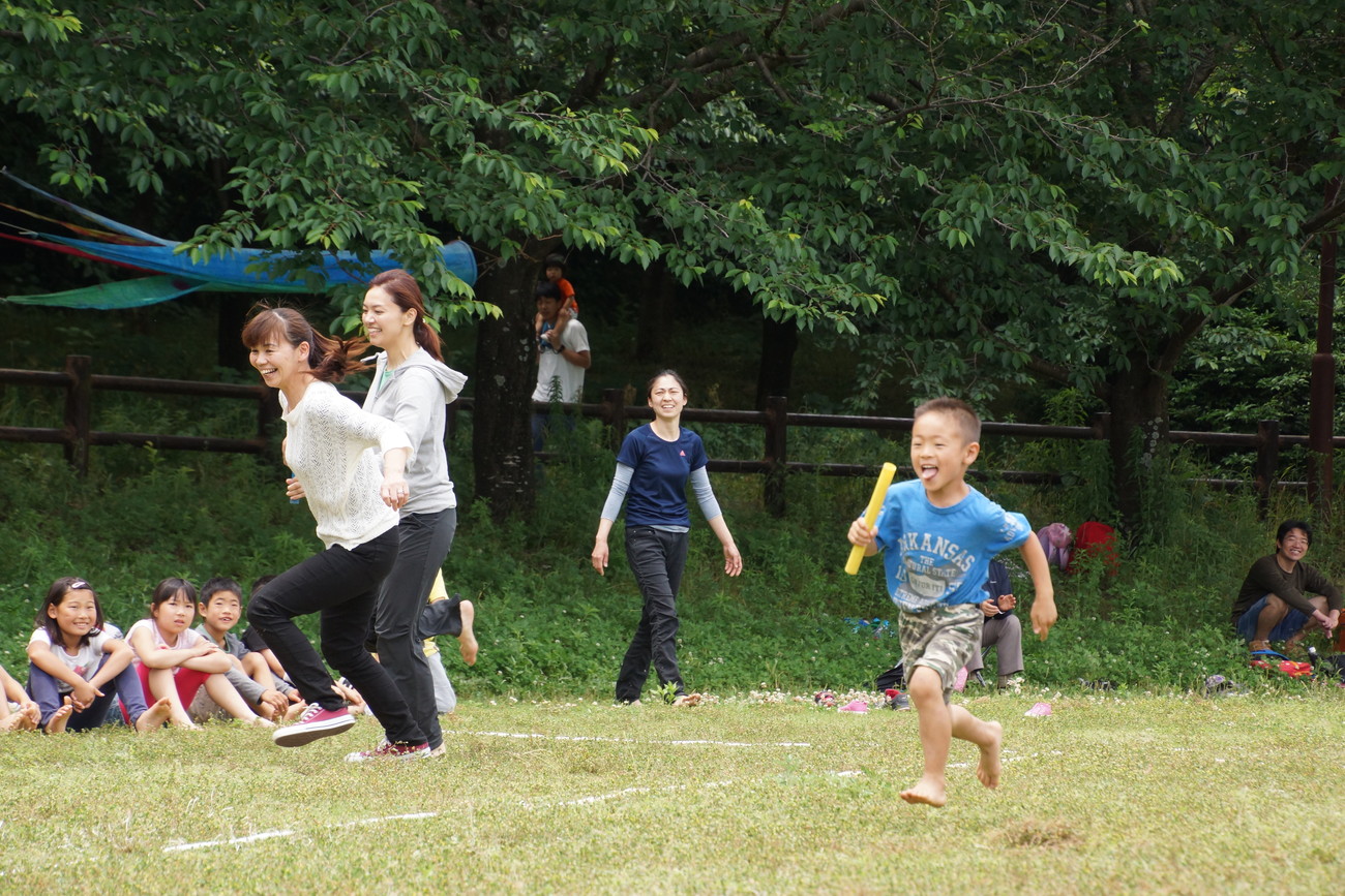 最後は年長ぞう組さんの親子リレー対決子どもチーム 勝利!!