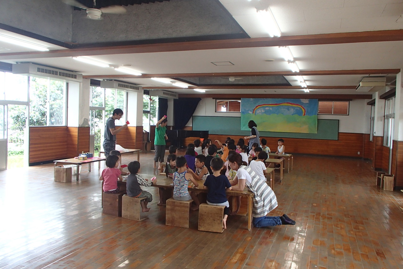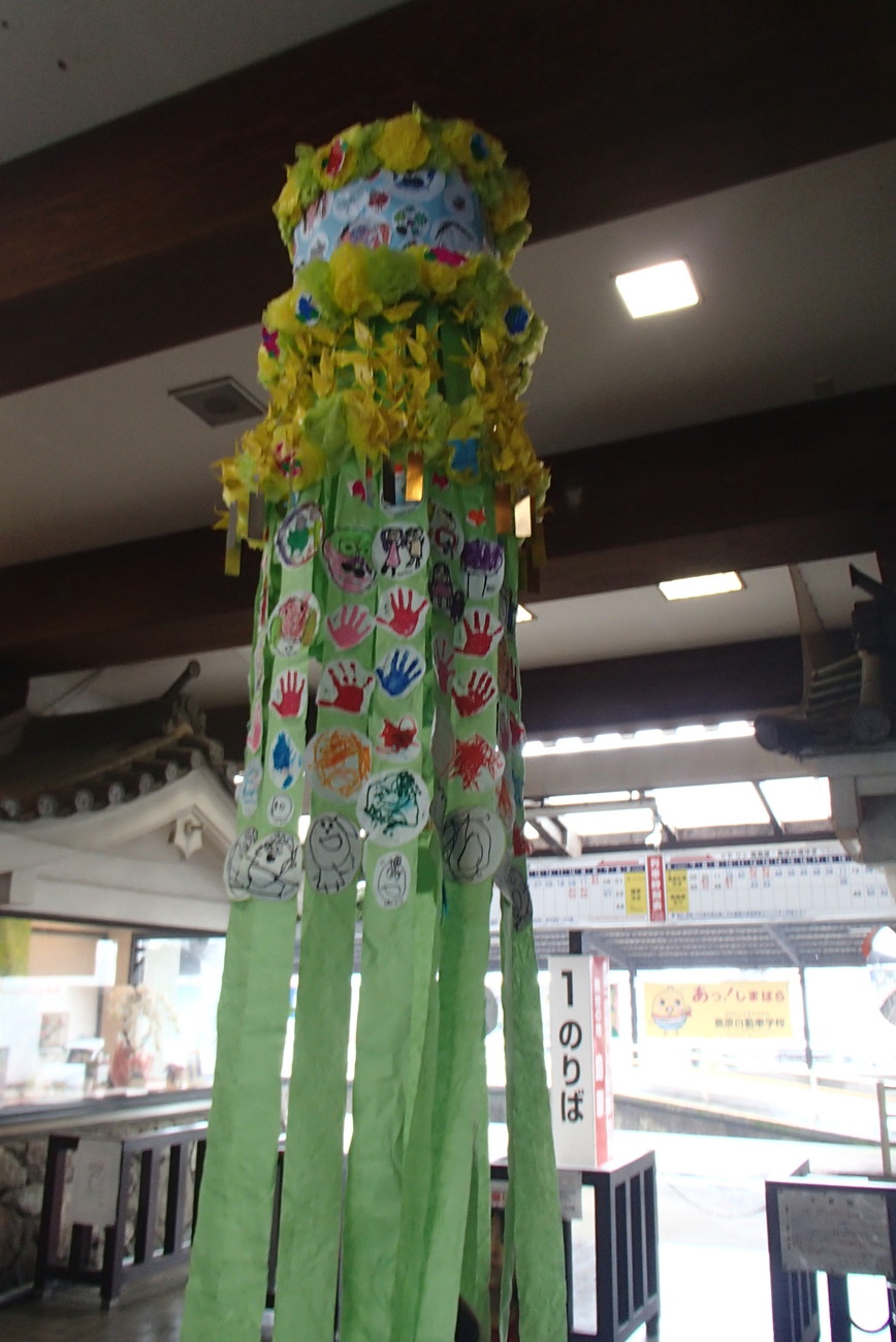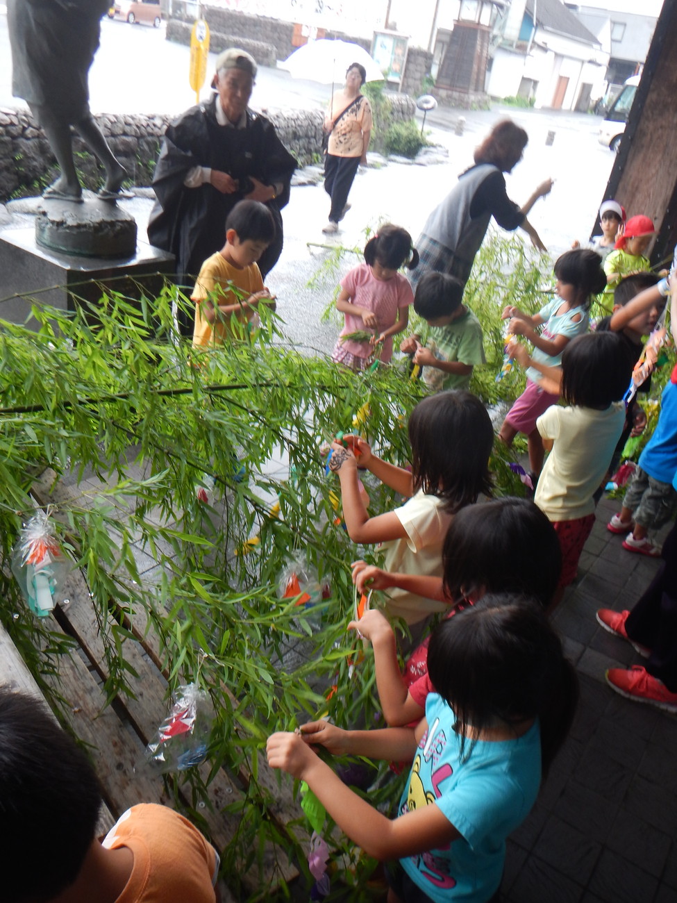 毎年あいじ保育園の年長さんと一緒に島原駅に七夕飾りをするのですが、今年は、一緒に飾り作りをしましょう!ということで、あいじ保育園の年長さん、わかくさ保育園にやってきてくれました。