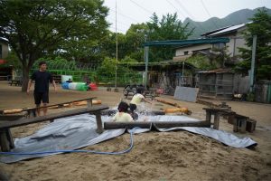 残念ながら、雨となってしまいましたので 代わりに保育園でお楽しみ会をすることになりました