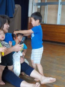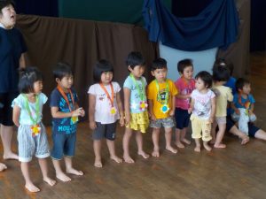 ホールにみんなやってきました 今日はどんなお楽しみがあるかな・・・