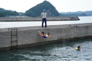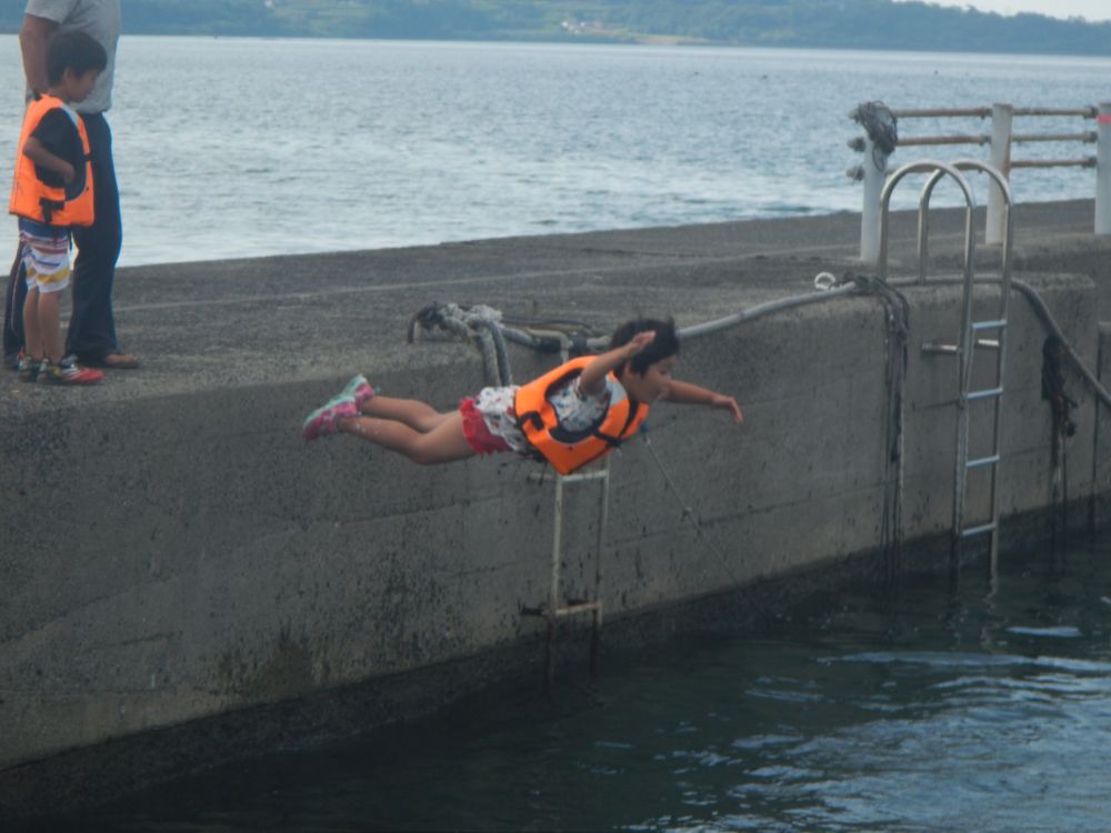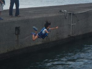 岸壁からダイブ