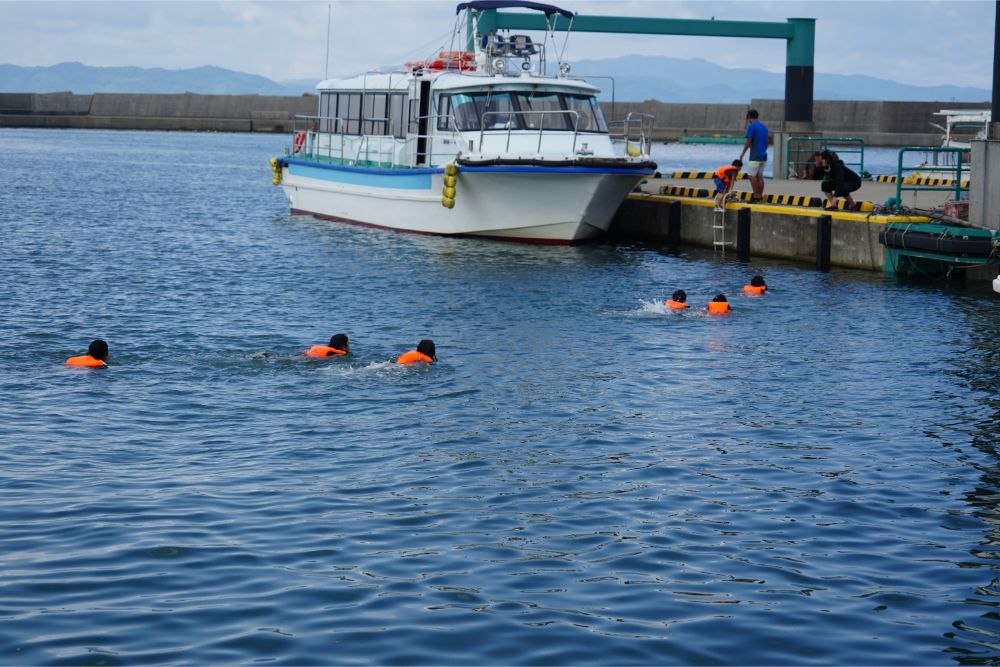ライフジャケットの練習もバッチリ さあ いよいよイルカを見つけに出発です