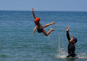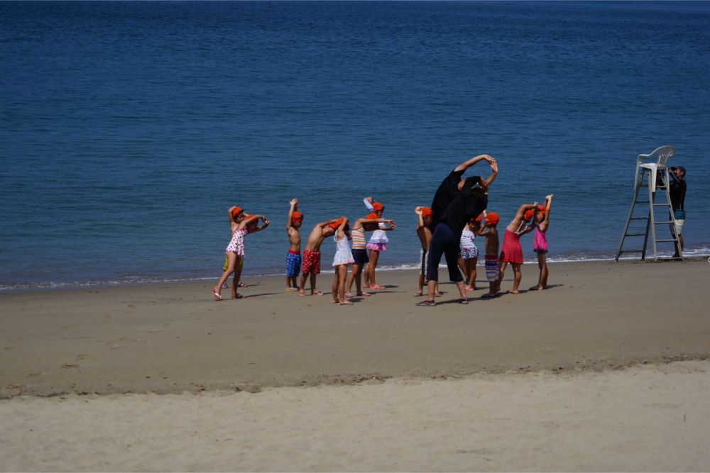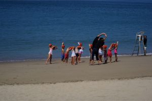 さあ、今度は海水浴 しっかり準備運動 いっちにい