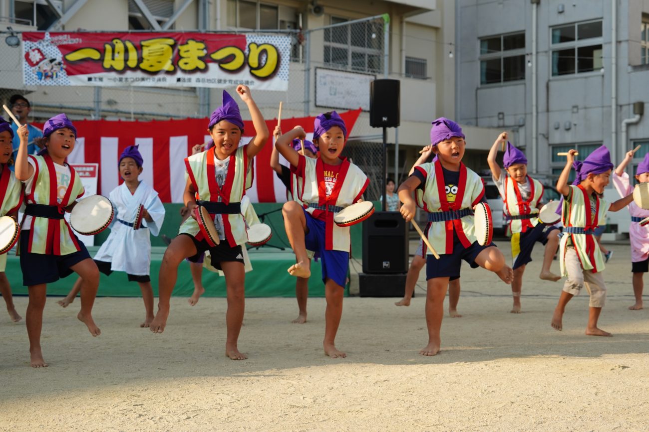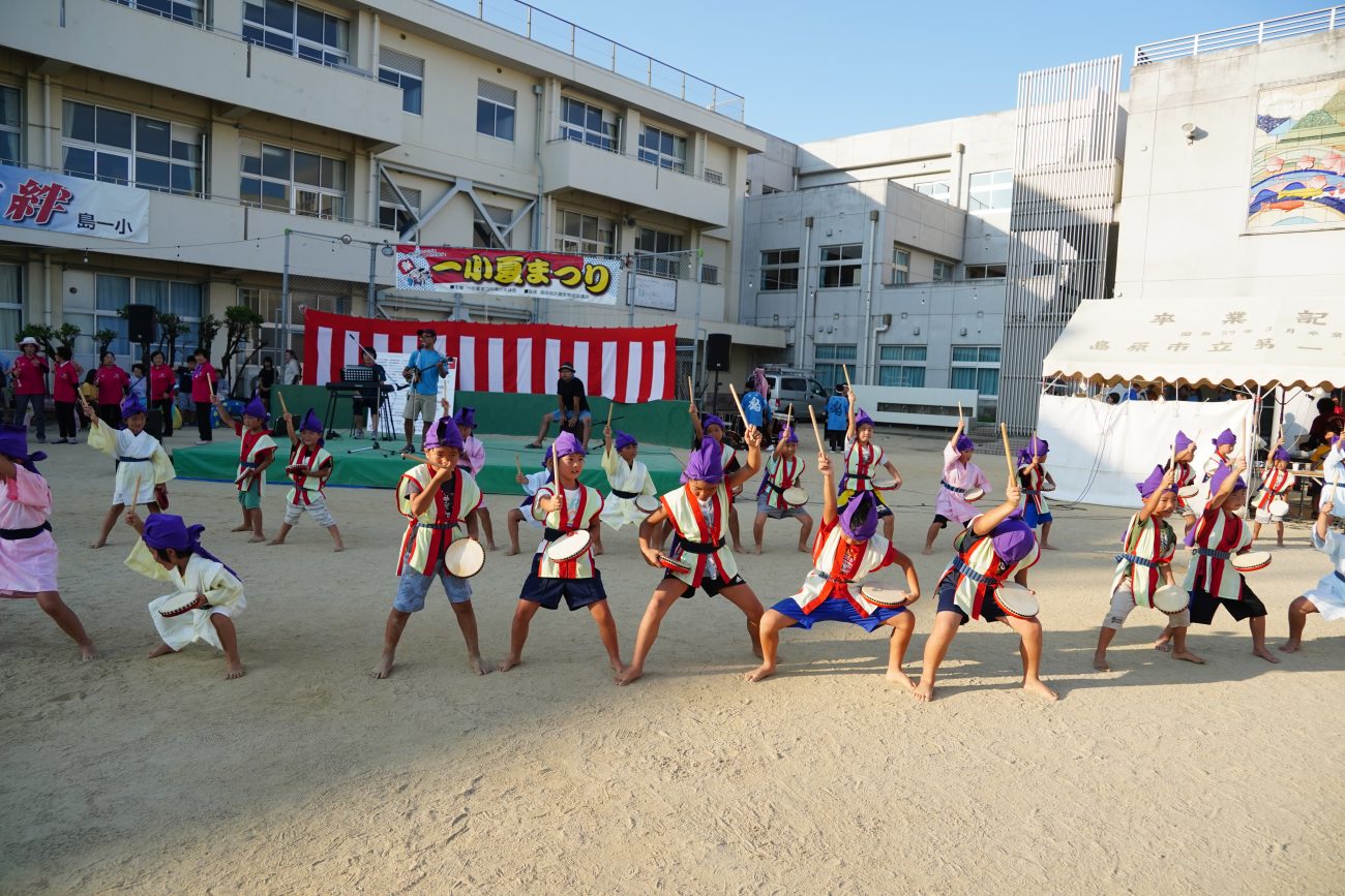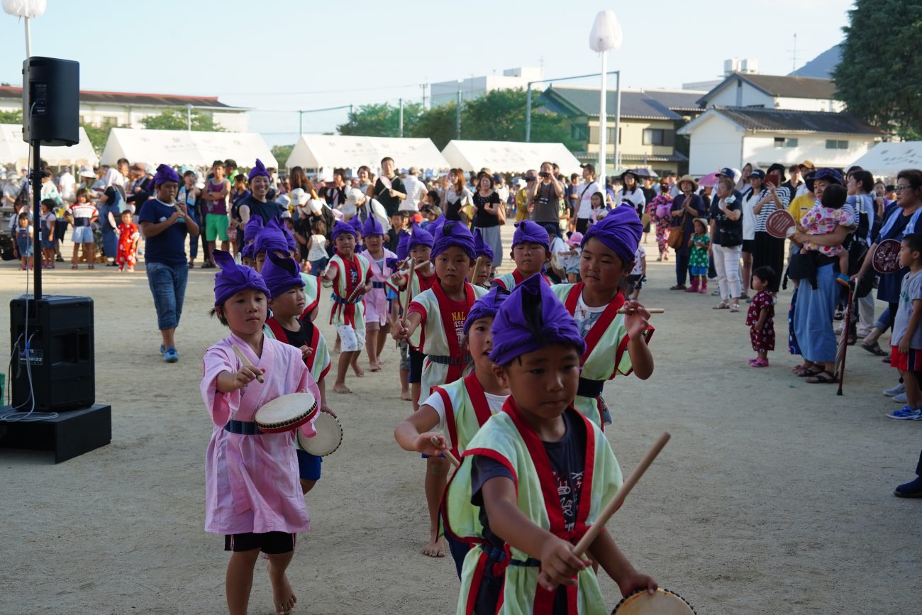 第一小学校の夏祭りのステージに、保育園のぞう組さんと学童さんが出演しました