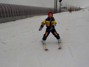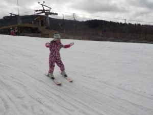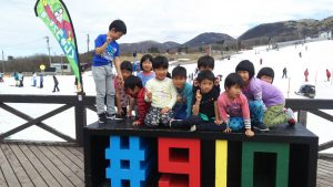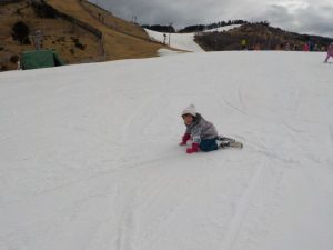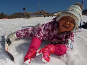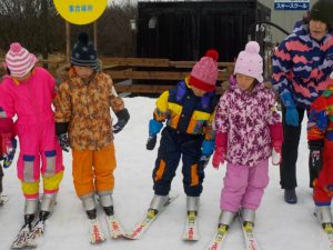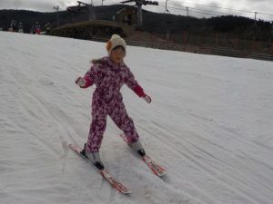 スキー場は雪がいっぱい スキーのブーツを履いてかこっこだ