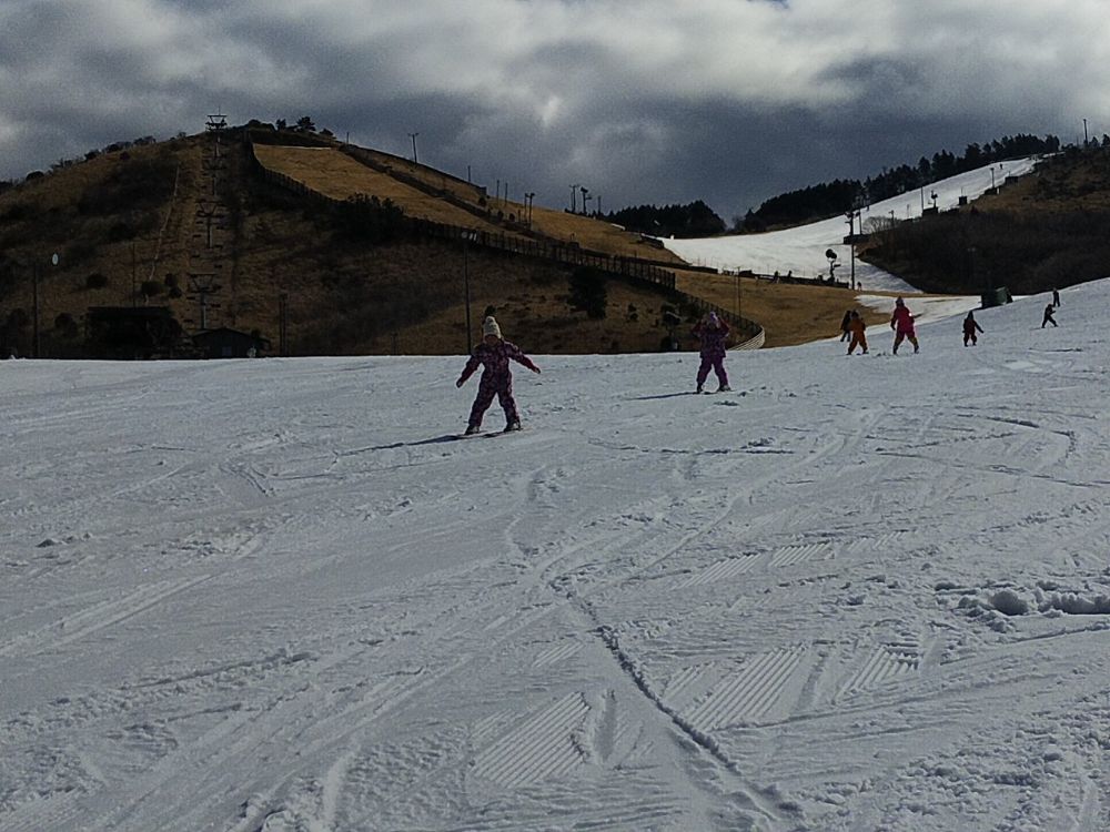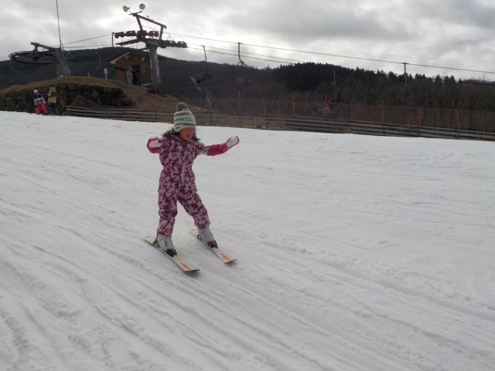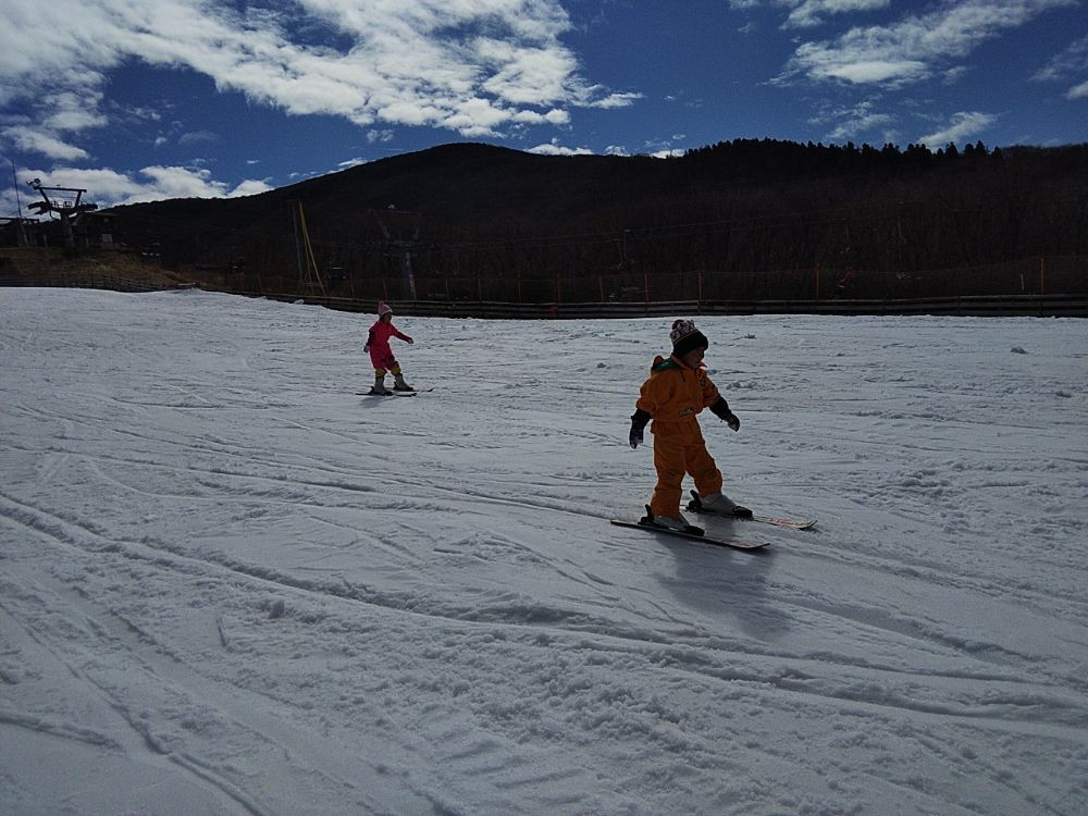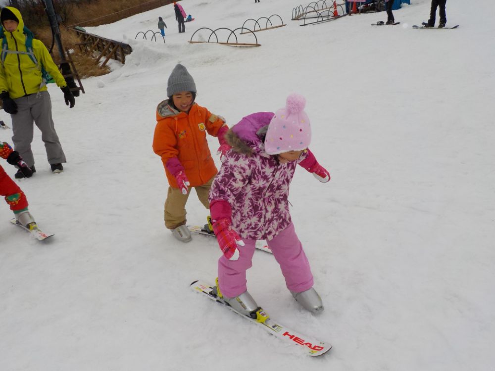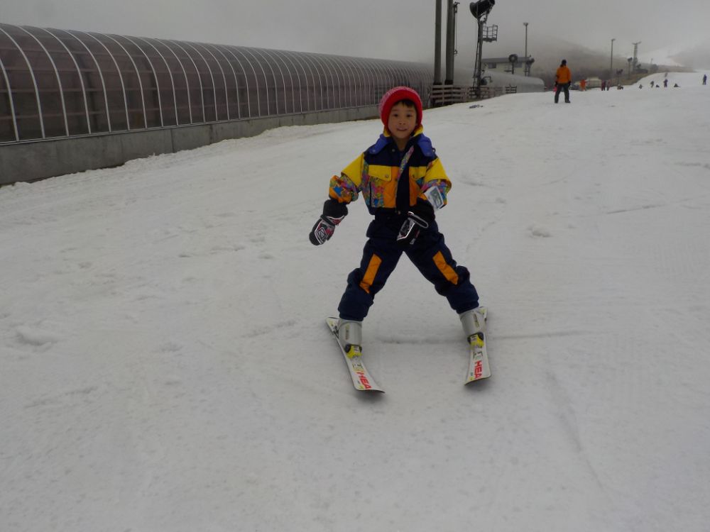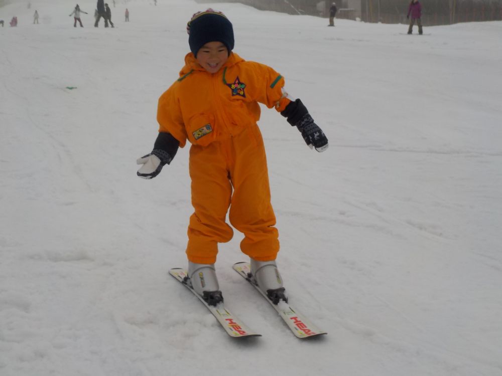 スキー場は雪がいっぱい スキーのブーツを履いてかこっこだ