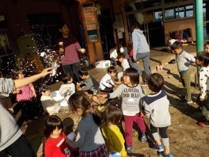 それ~ 一瞬だけど保育園でも雪合戦を楽しめましたよ