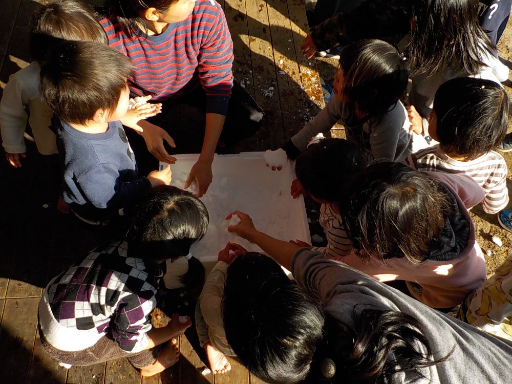 それ~ 一瞬だけど保育園でも雪合戦を楽しめましたよ