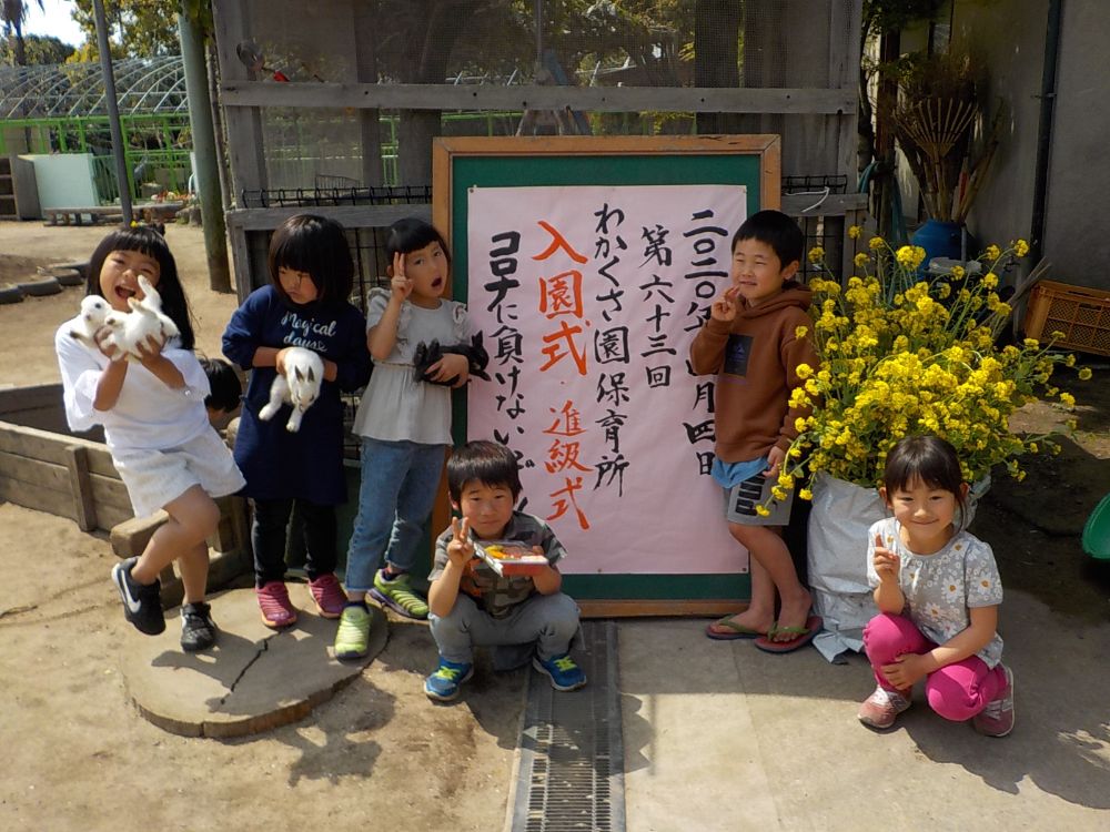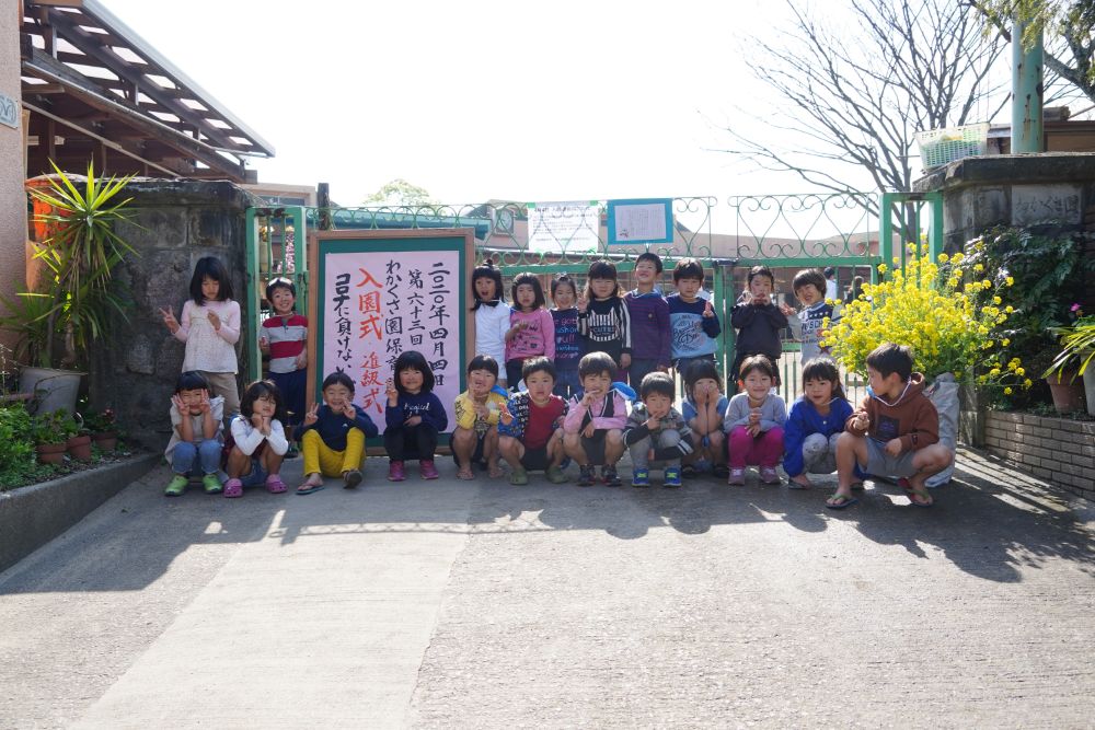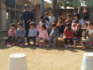 コロナウィルスのため今年は園庭での入園・進級式となりました