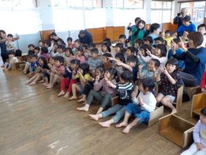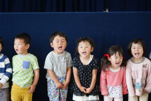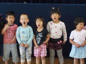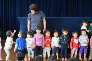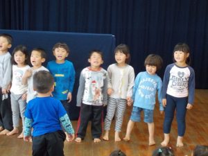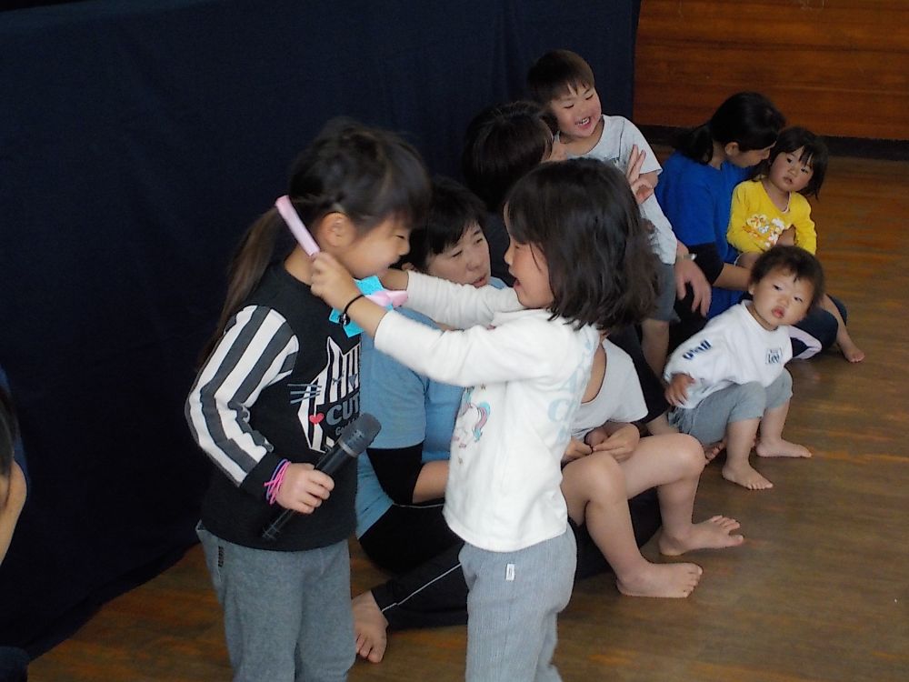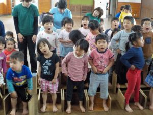 こどもたちは手遊びが大好き  ♪ どのたけのこが せいたかか? ♪