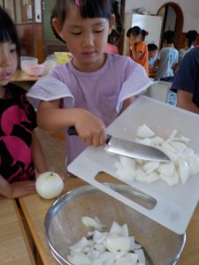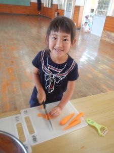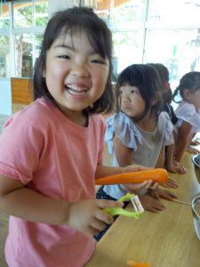 保育園で食材の下ごしらえをしましょう まずはピーラーを使って皮むき