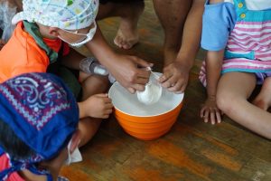 なんだかいい匂いがするぞ~ と小さい子たちもかけつけました
