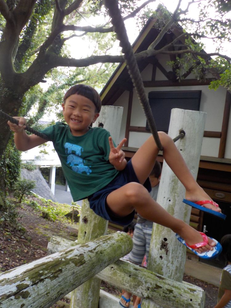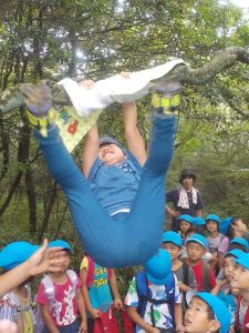 横に伸びている枝につかまり 逆上がりに挑戦  よいしょ~!!