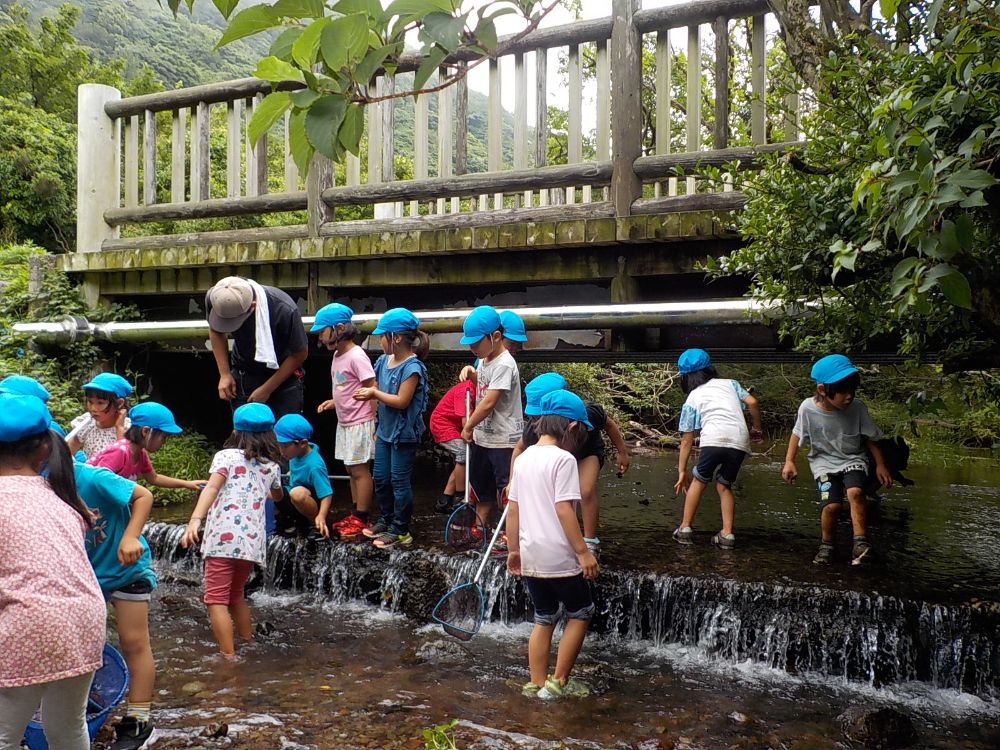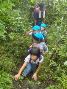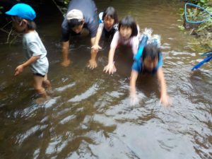 小さな小川を見つけると 疲れも吹っ飛んだように川遊びを始めるこどもたち