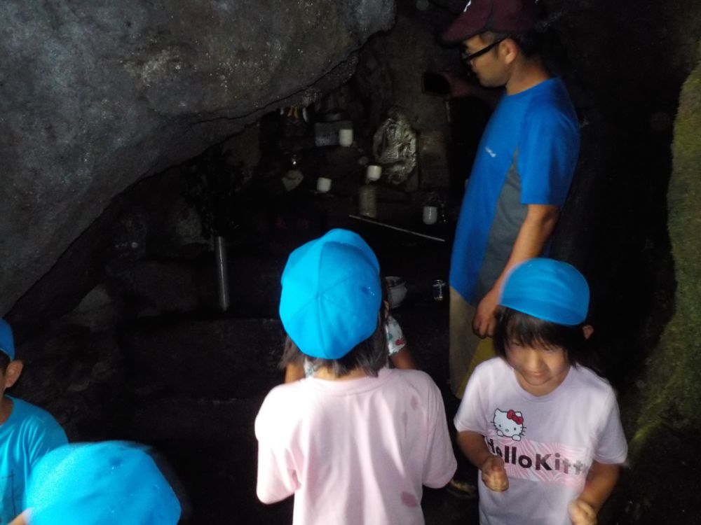 大きな岩穴の祠に 大明神がおりました   無事にお泊りできますように・・・