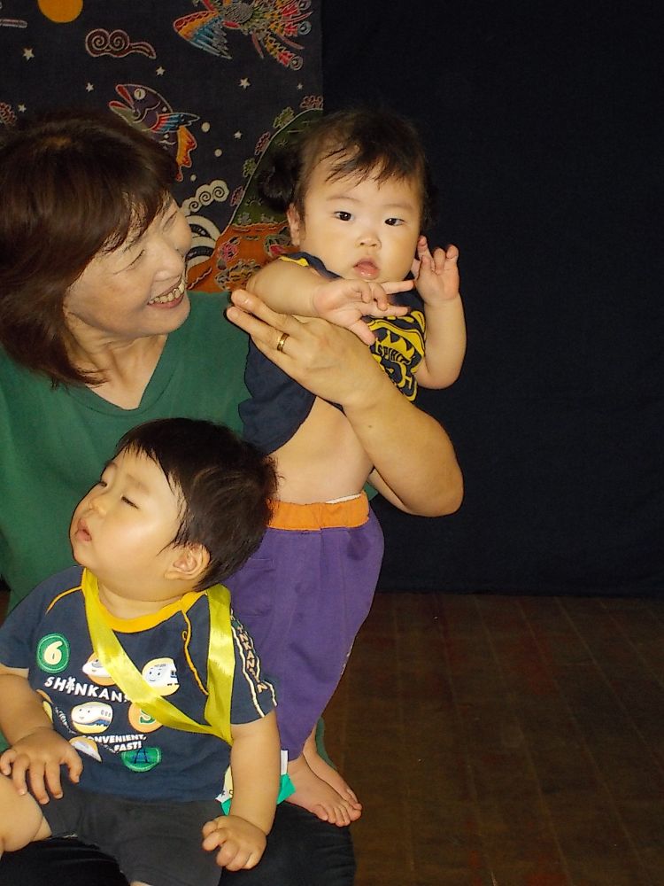 獅子舞い登場に きゃ~っ!! と子どもたち