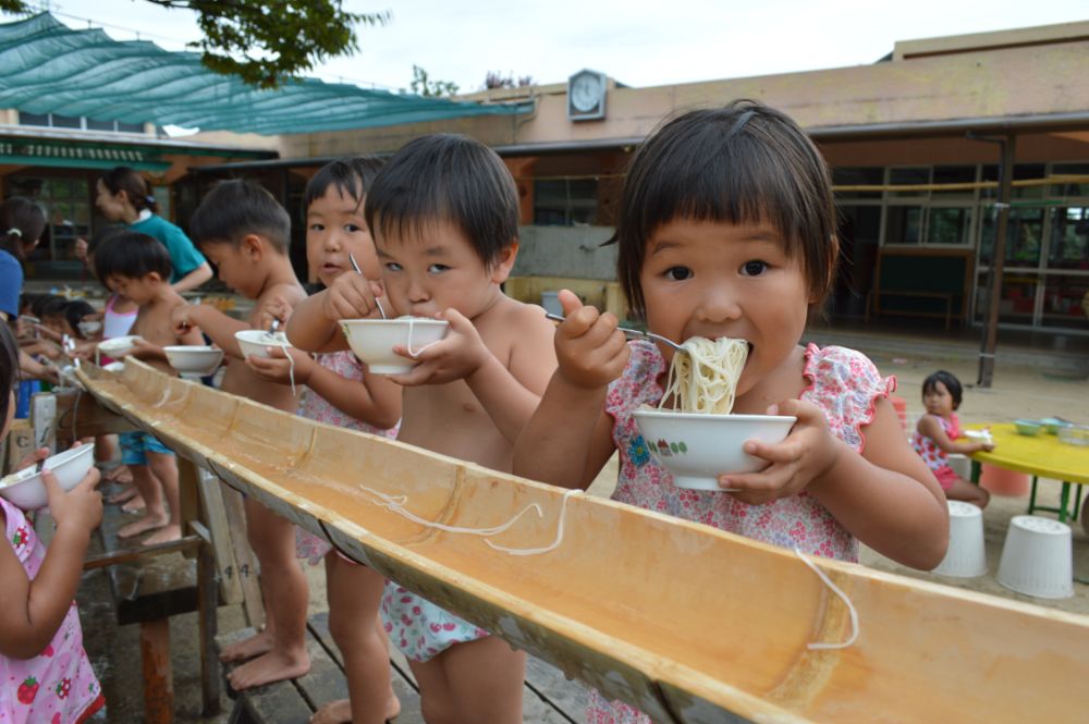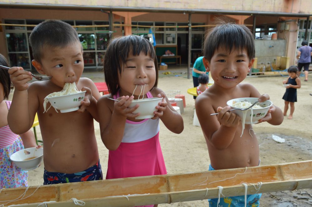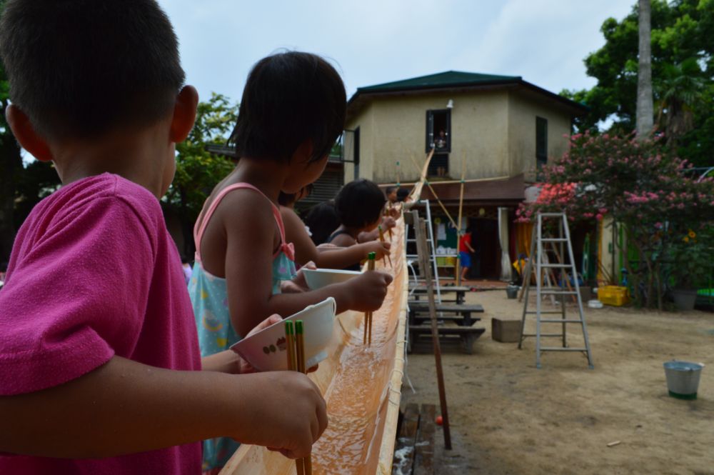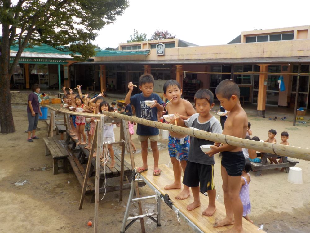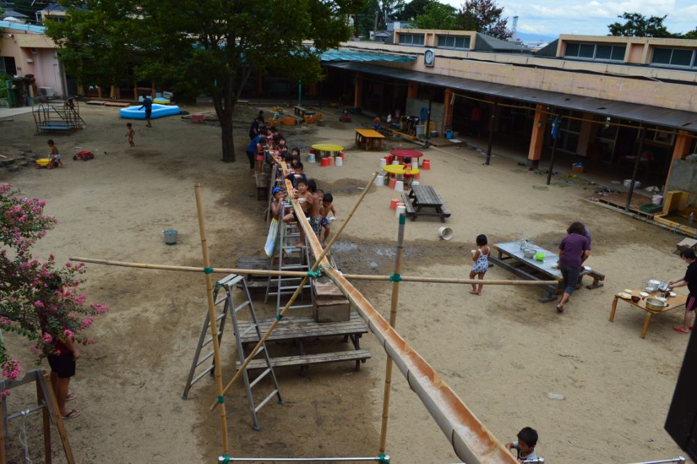 できました そうめん流しセット  今年は学童建物の2階から流します