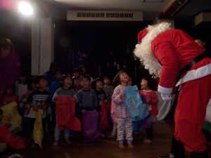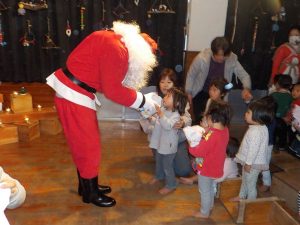 いつもと違うホールに集まってきました わぁ ほんとにサンタさん来てくれるかなぁ・・