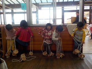 すてきなハンドベルの音色を聞かせてくれたのは 子育て支援センターに来ているお母さんたちです