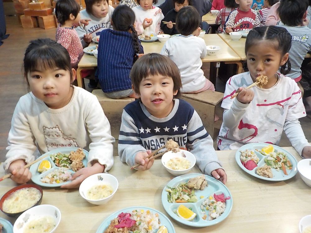 お昼はごちそう ぞうさんがいただきますの歌を歌ってくれました