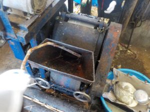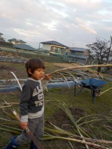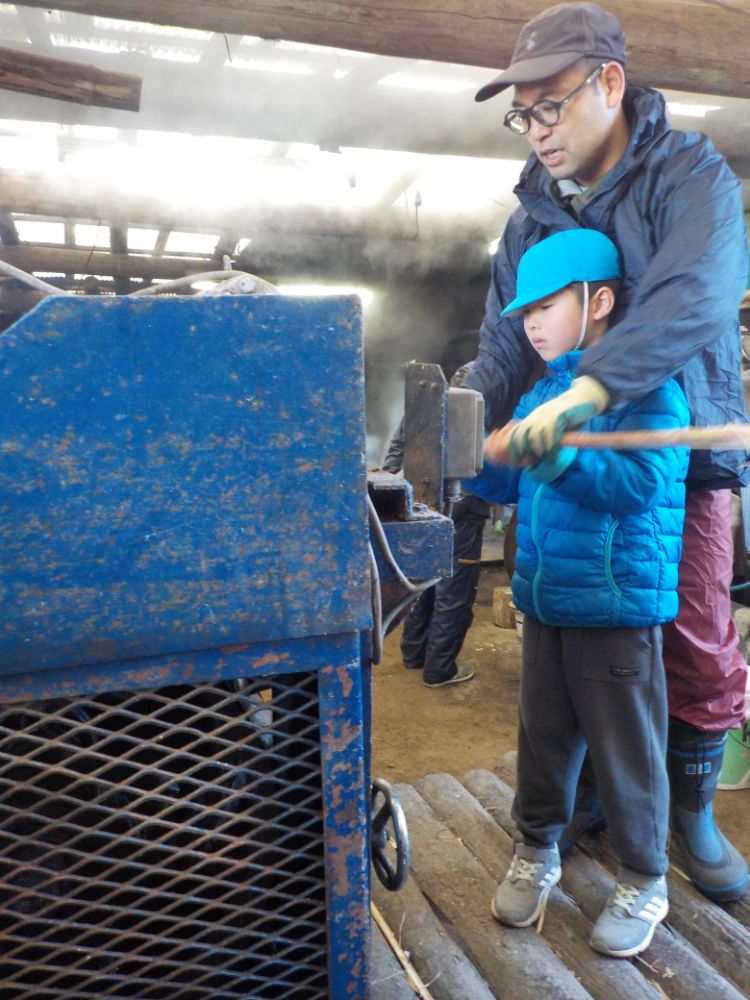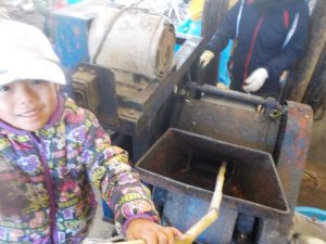 刈り取ったサトウキビを絞ります  北有馬の農家の方のとこまで運んで絞らせてもらいました