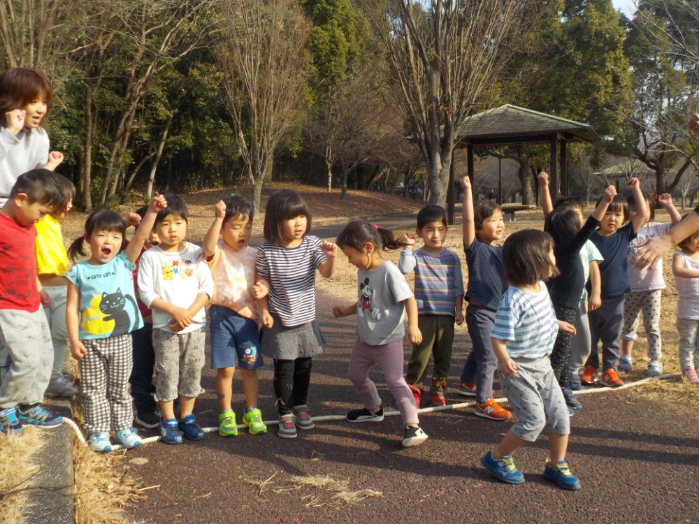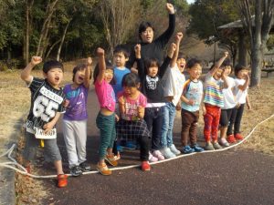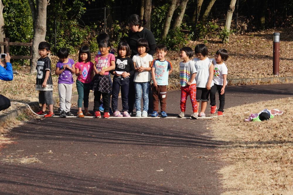 さあ いよいよ年長ぞうぐみさん 3人1チーム 8チームで駅伝です