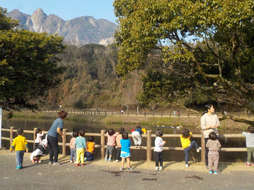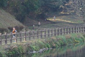 きりんさんは池の方まで行って 途中の橋を渡って芝生をぐるり