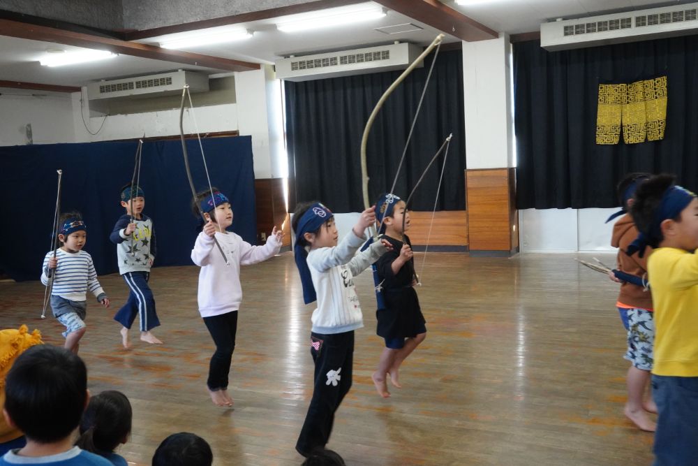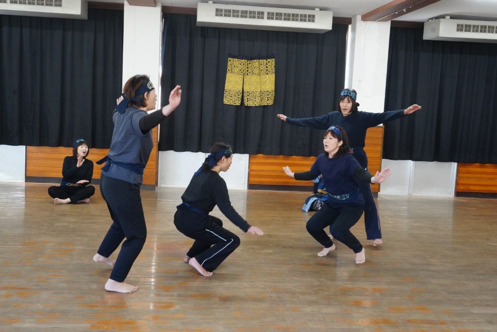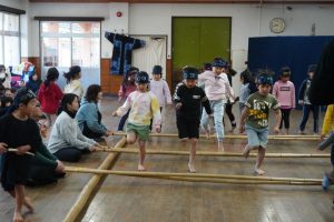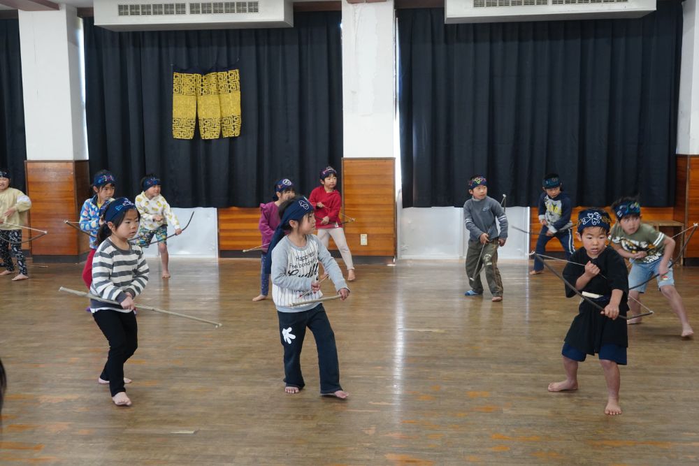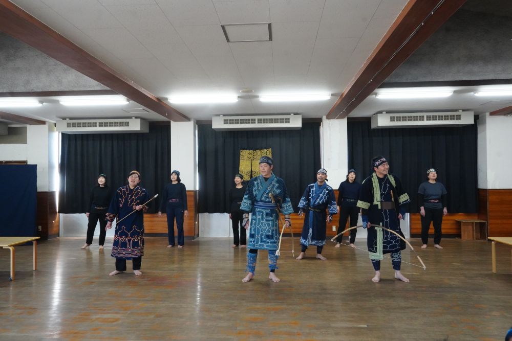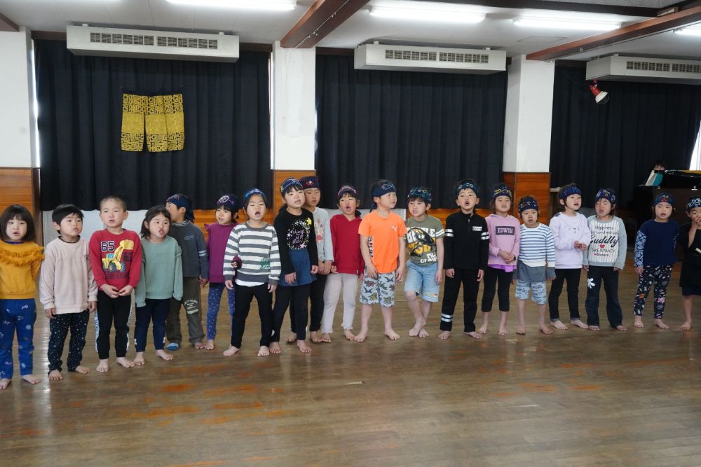 マタンプシを頭につけて 竹踊を披露 毎日取り組んでどんどん上手になっていますよ