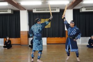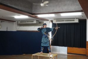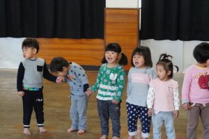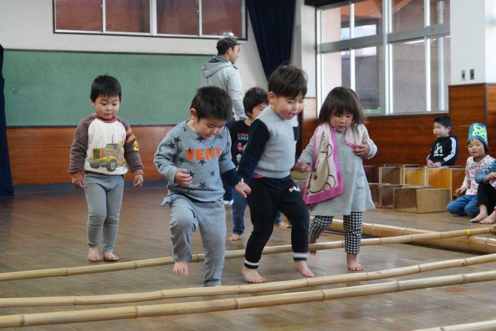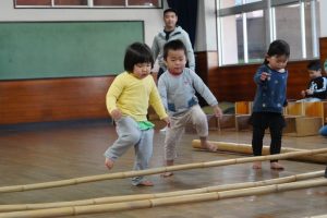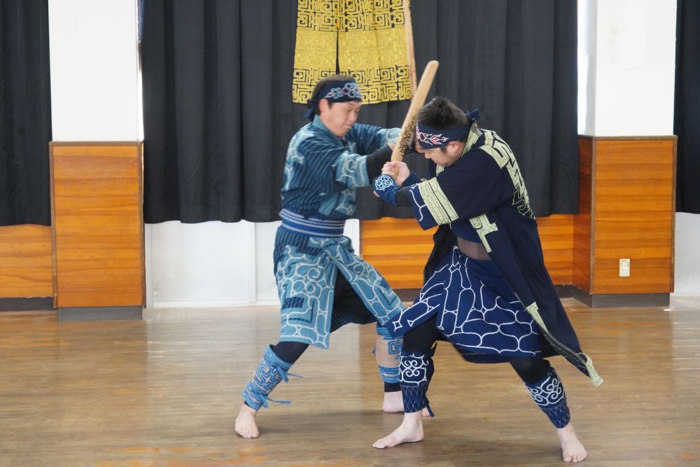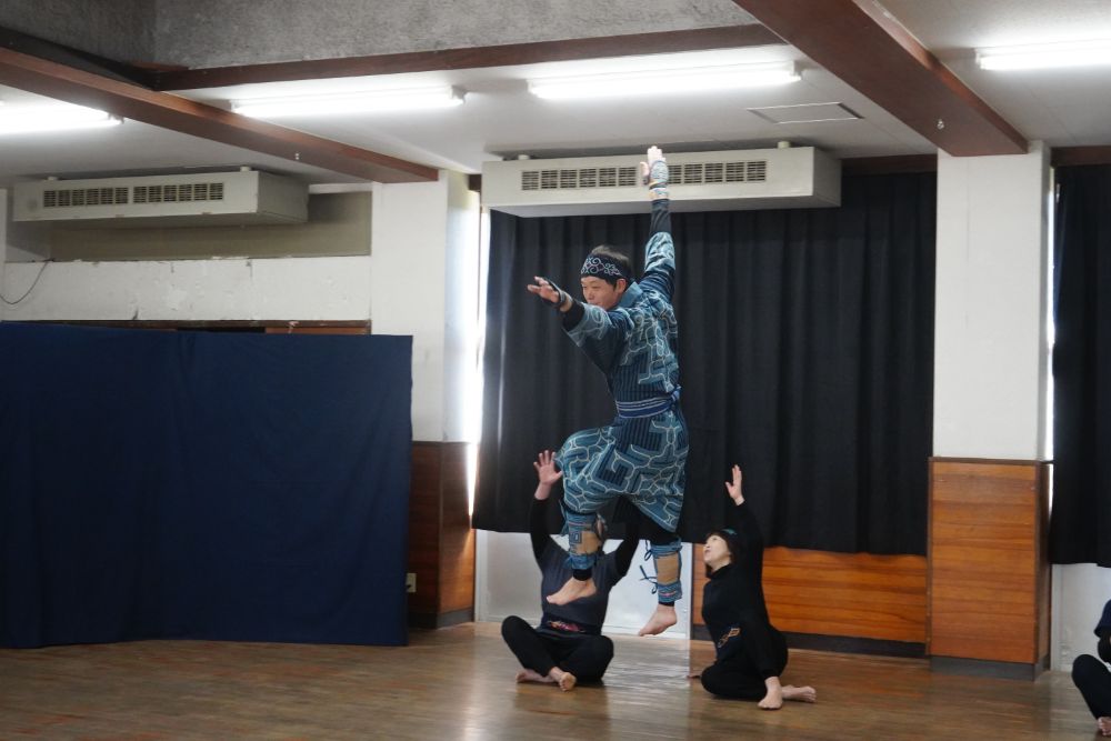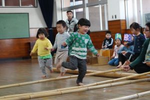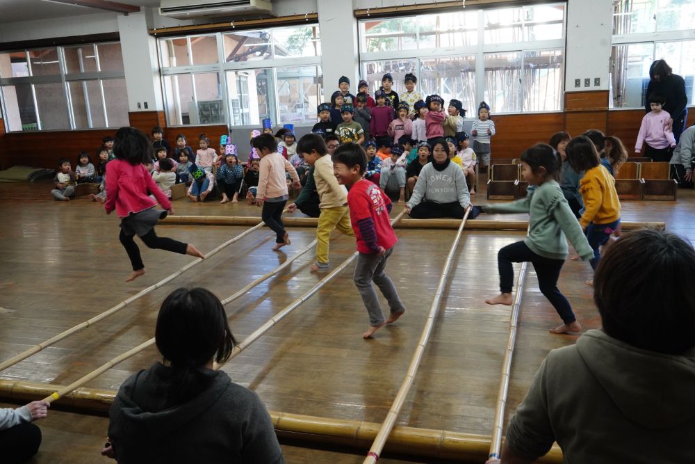 マタンプシを頭につけて 竹踊を披露 毎日取り組んでどんどん上手になっていますよ