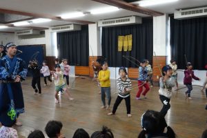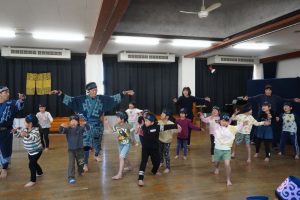 悪魔とたたかうオキクルミ 子どもたちも歌で応援します