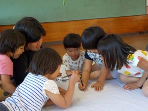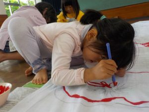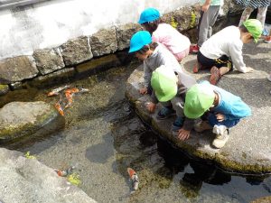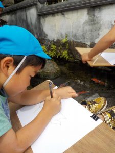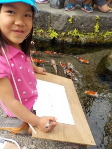年長ぞう組さんは 今度は鯉をスケッチしてみることに