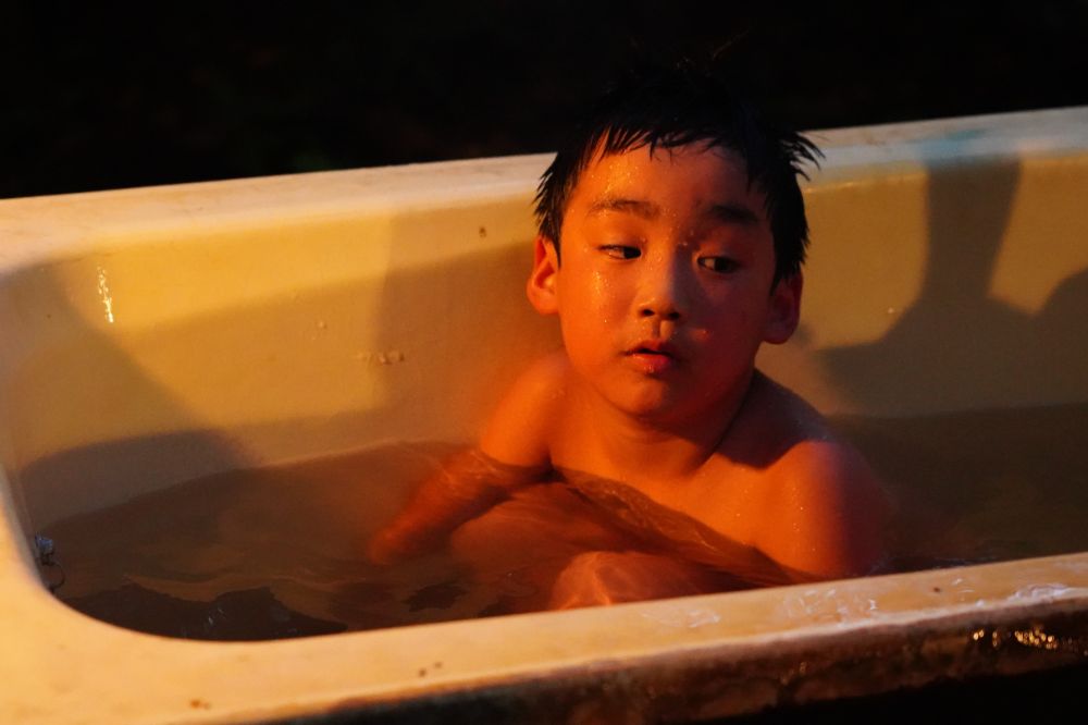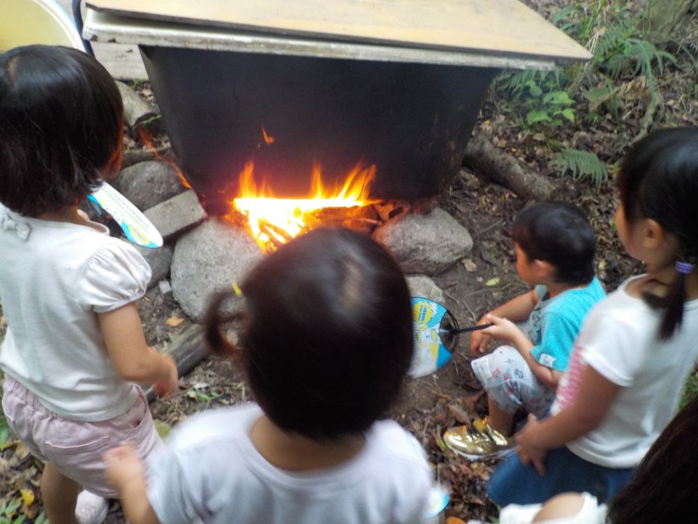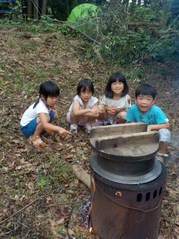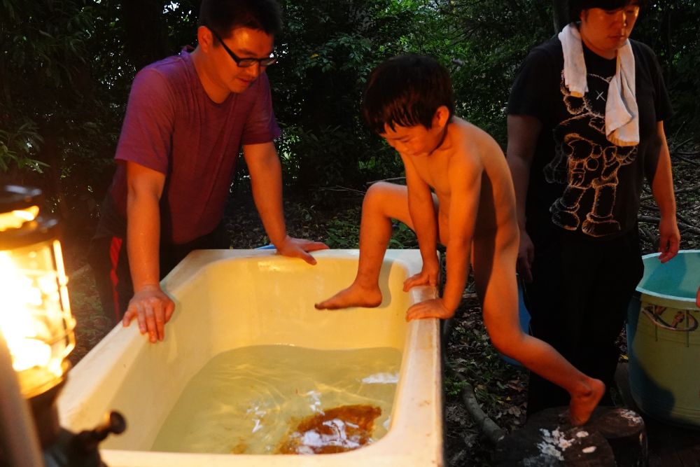 ご飯の後は五右衛門風呂 俺が一番だ~!