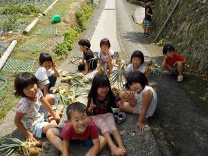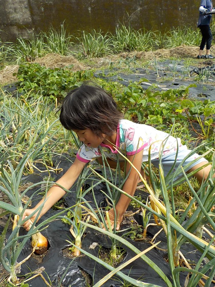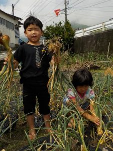 キャンプの前日、保育園の畑の玉ねぎを収穫しました