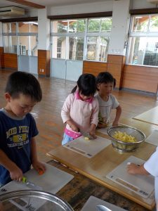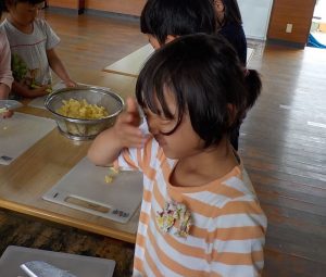保育園に帰って 晩ご飯の下ごしらえをしておきましょう