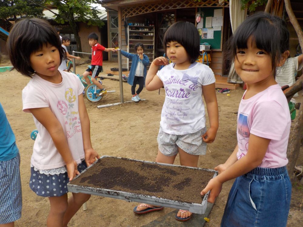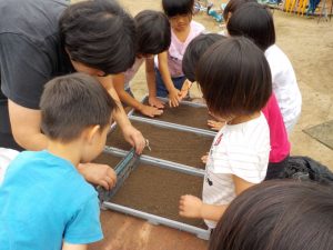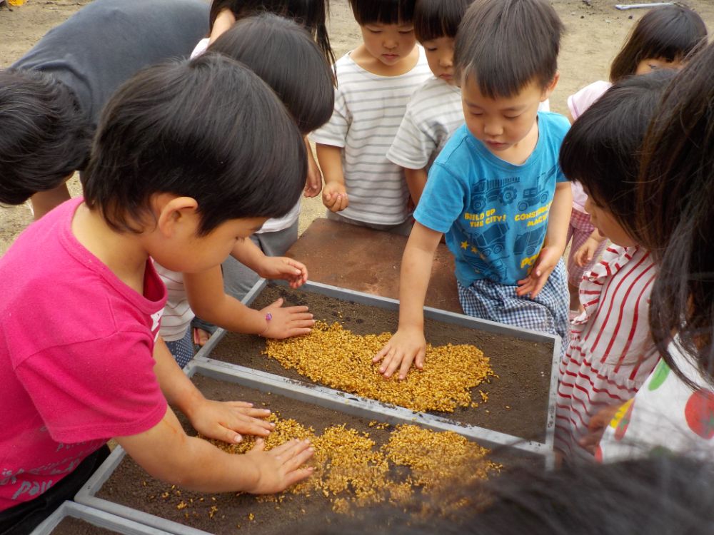 種もみを土の上に広げて
