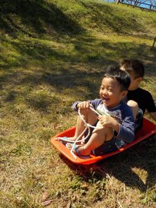 たくさん遊んで保育園に帰ってきたのは夕方です