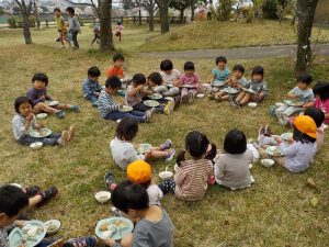 芝公園でたくさん遊んで お腹すいた~! っと出前の給食が届きました