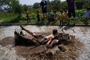 さあ みんなで代掻きよろしく わぁあ にゅるにゅる~