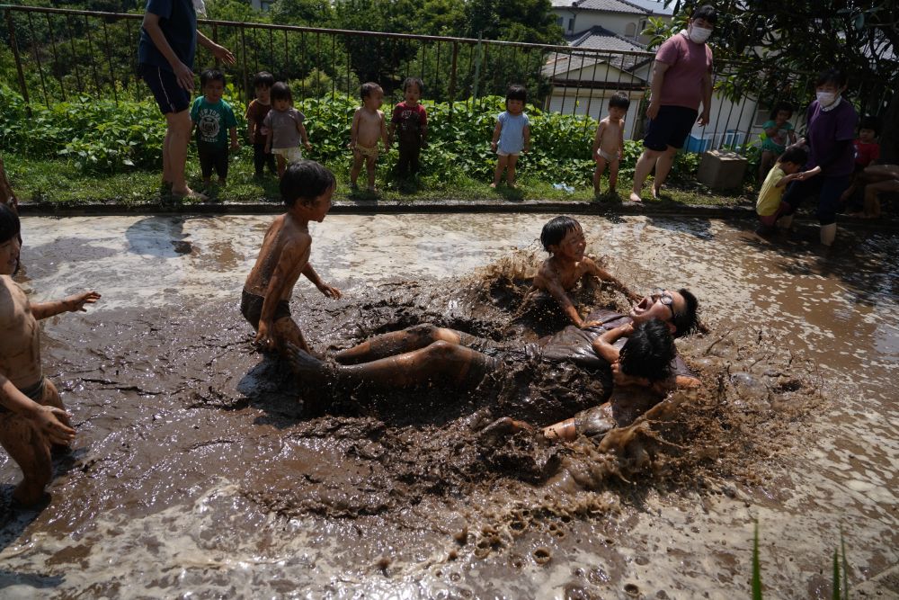 みんなが遊んでくれたおかげで 田んぼの土はとっても柔らかくなりました