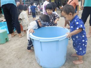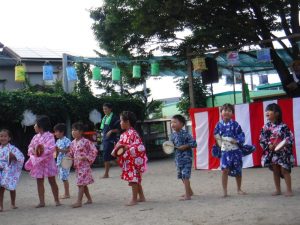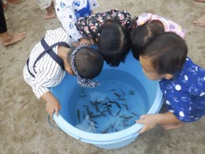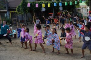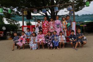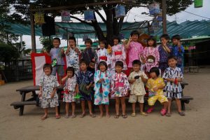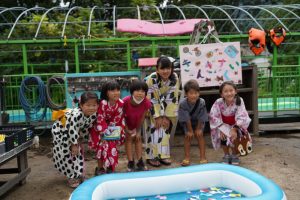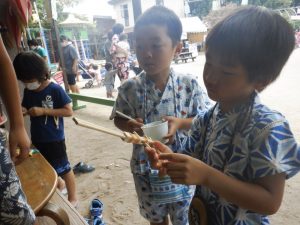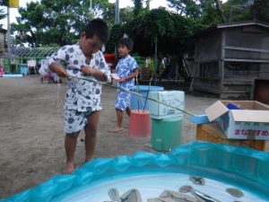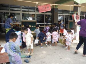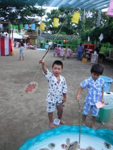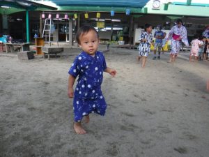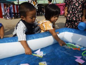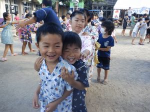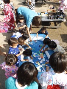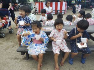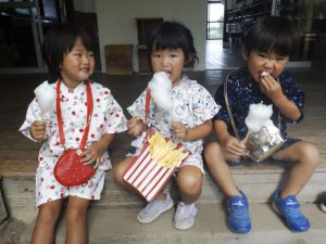 コロナのせいで、今年も園内だけの夏祭りでしたが、子どもたちが自分たちでつくったお祭りって感じになって