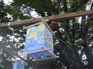 ぞう組さんは 手作り木枠とていねいに色を塗って作った提灯