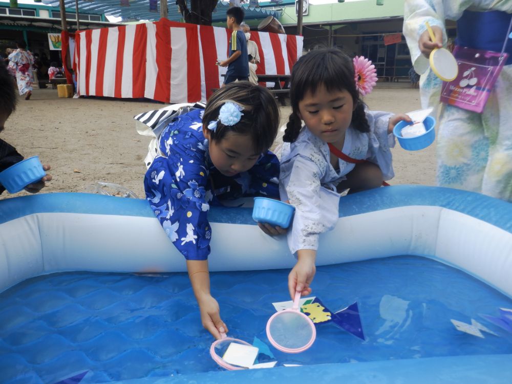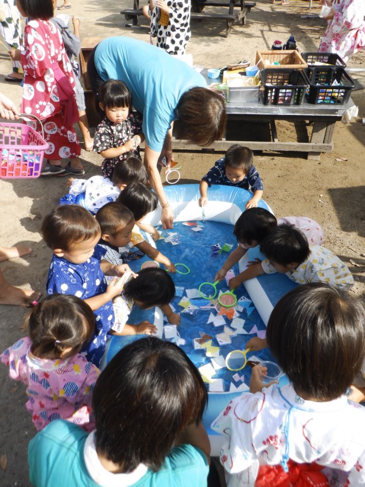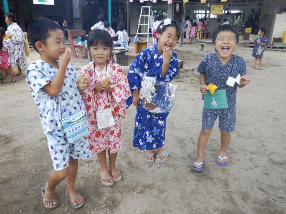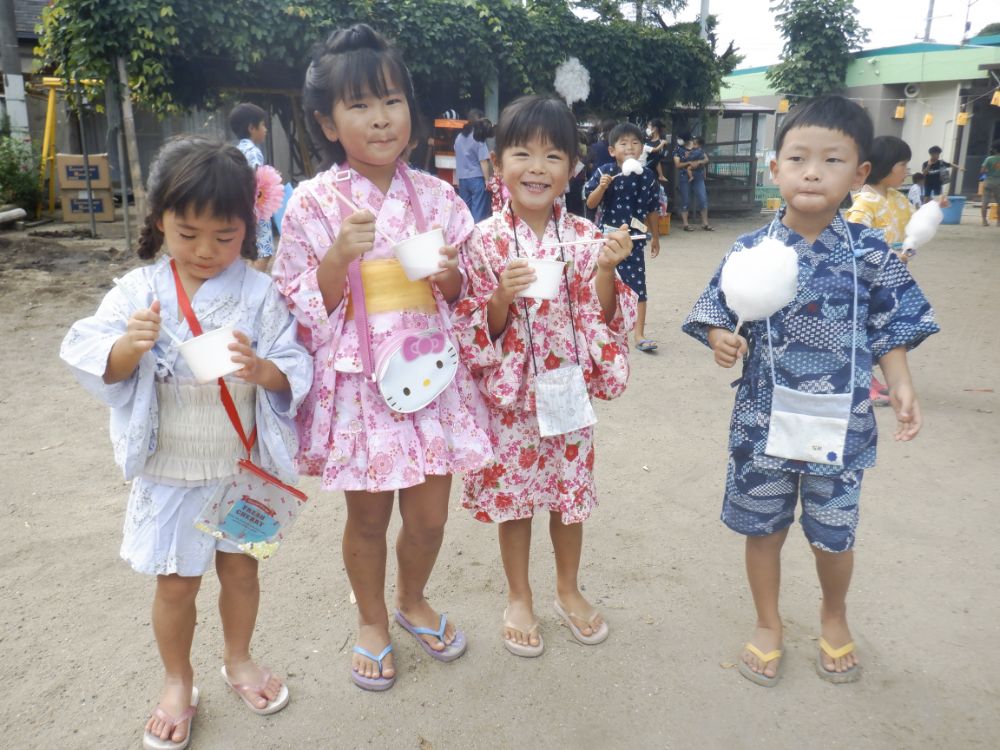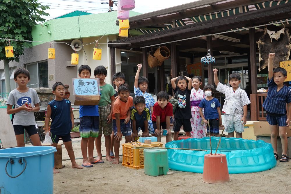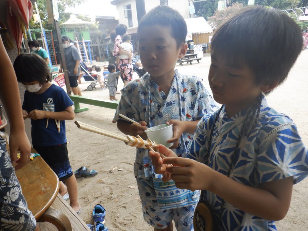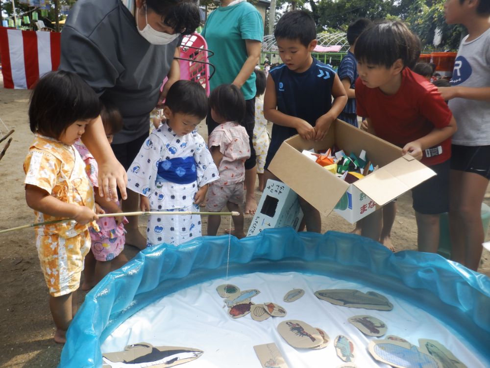 コロナのせいで、今年も園内だけの夏祭りでしたが、子どもたちが自分たちでつくったお祭りって感じになって