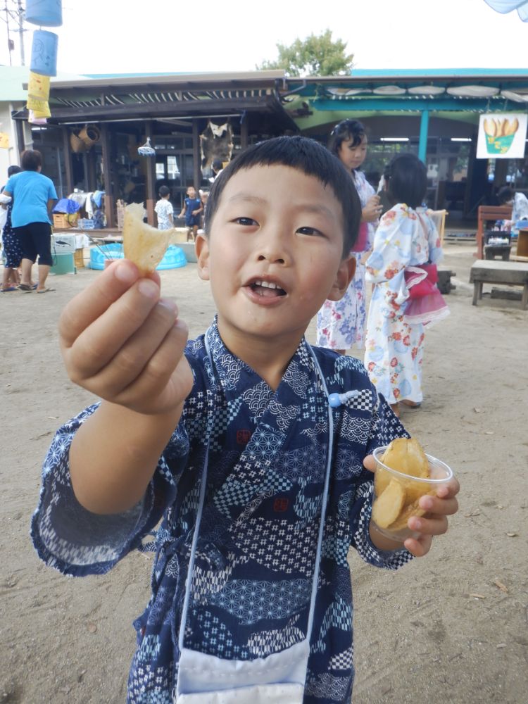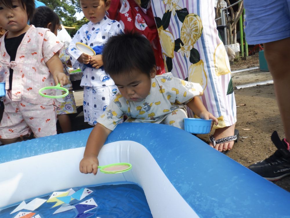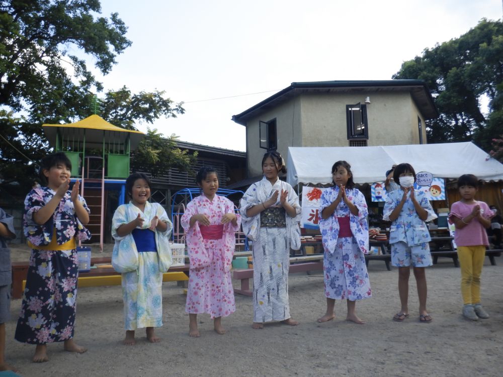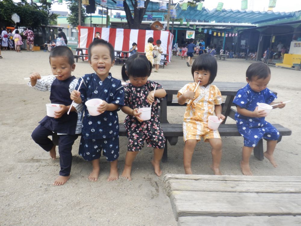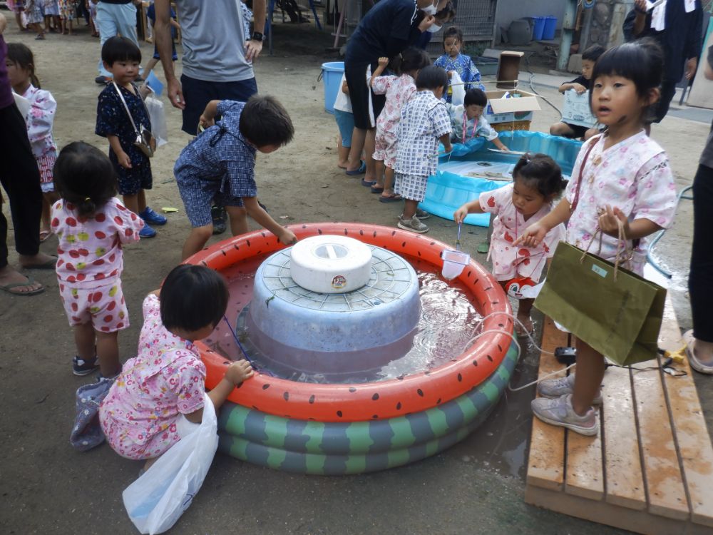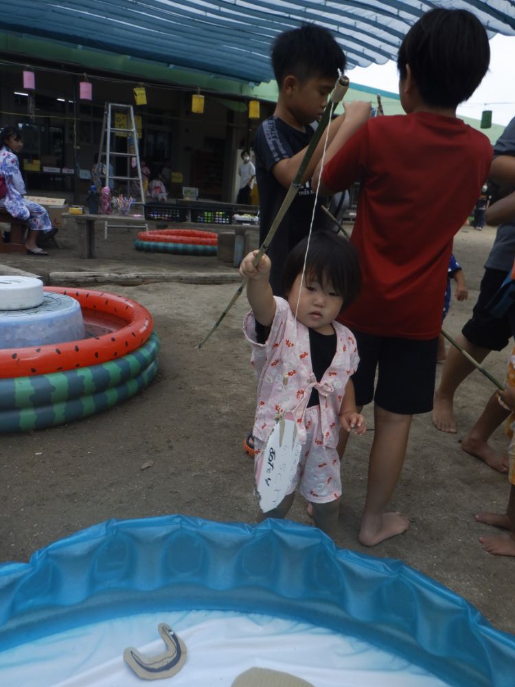 コロナのせいで、今年も園内だけの夏祭りでしたが、子どもたちが自分たちでつくったお祭りって感じになって