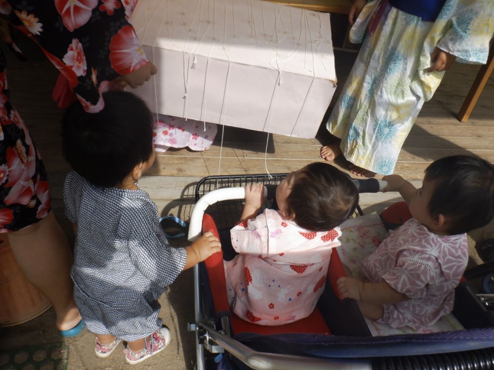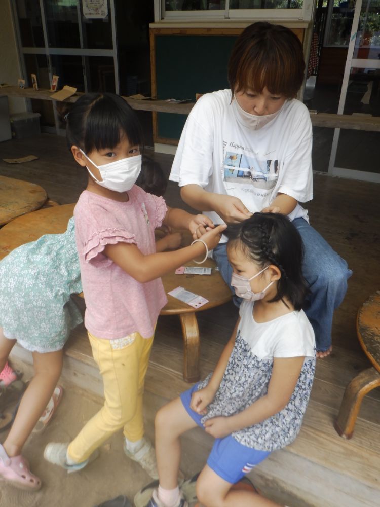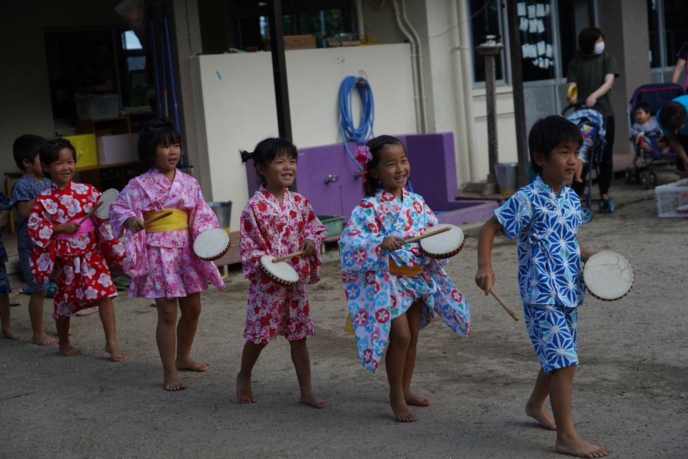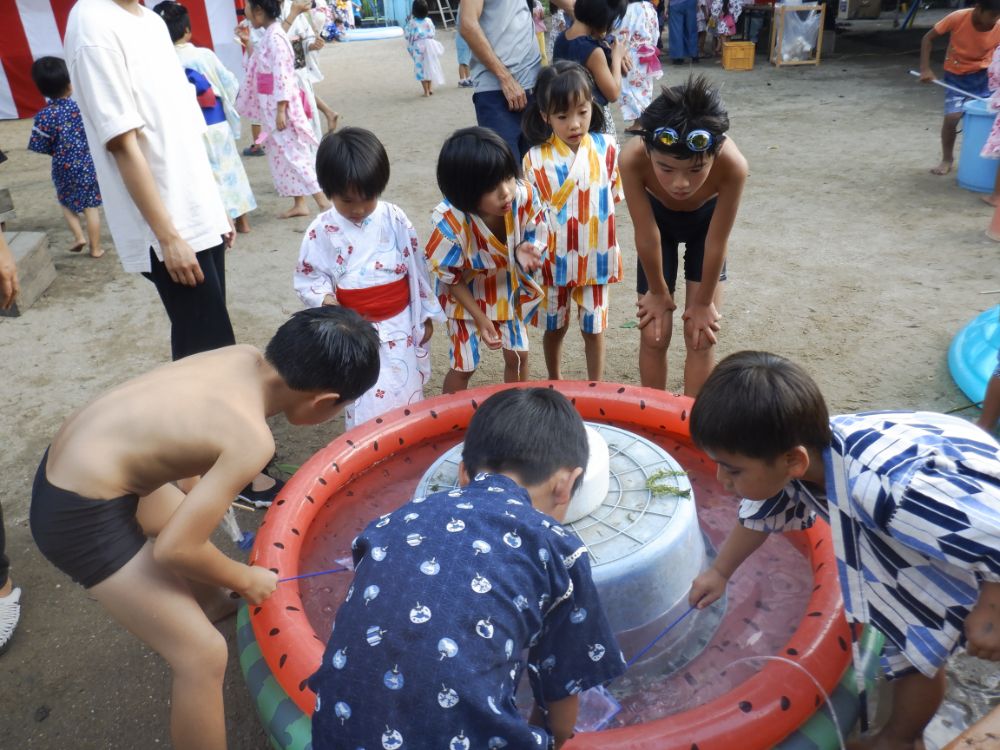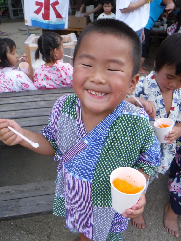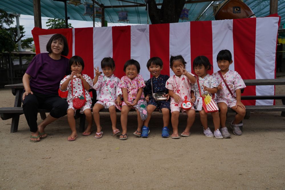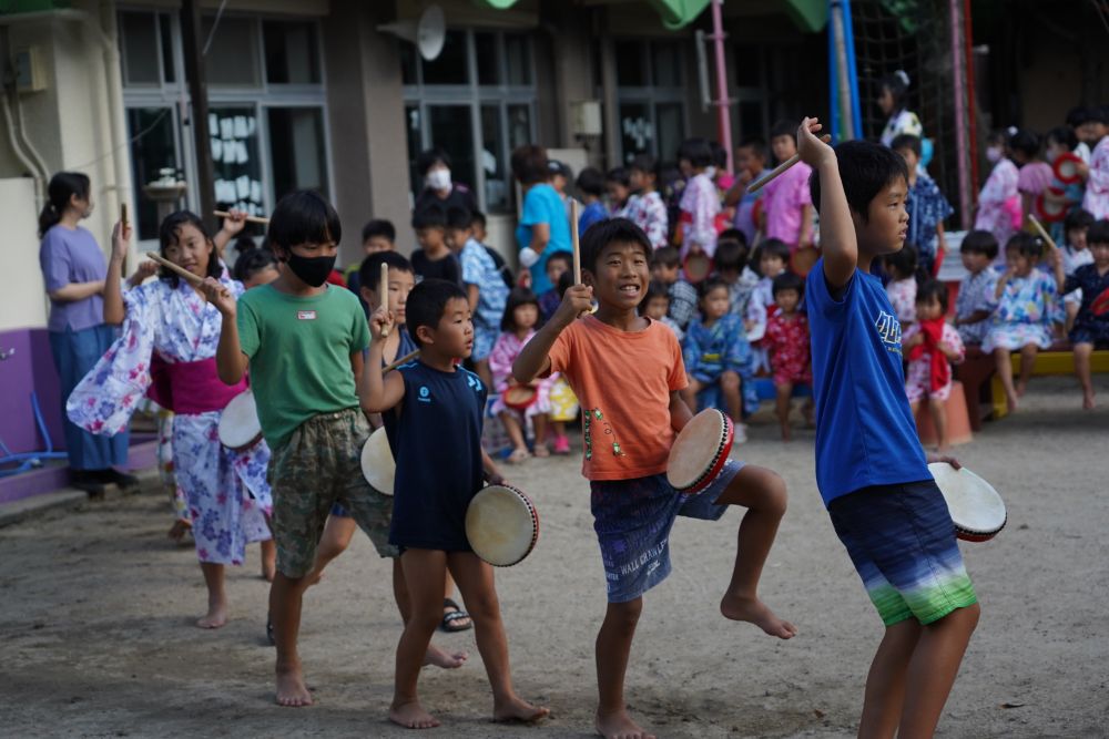 コロナのせいで、今年も園内だけの夏祭りでしたが、子どもたちが自分たちでつくったお祭りって感じになって