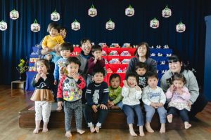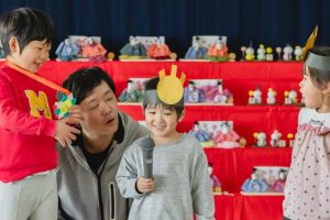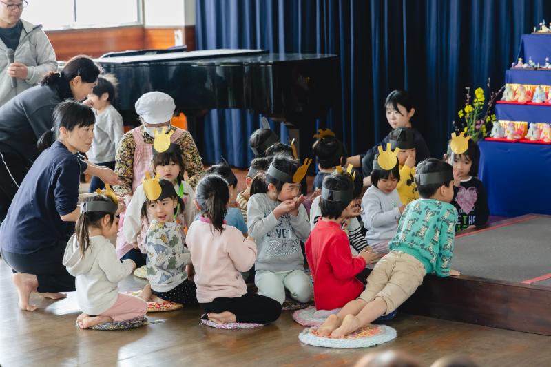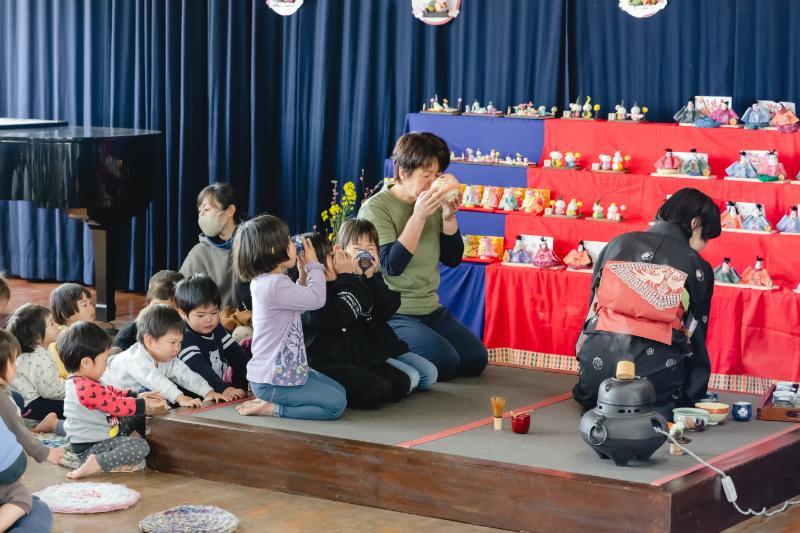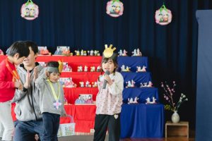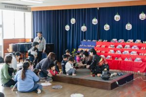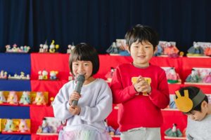 みんなの手作りひな人形を飾って、お祭りのはじまり