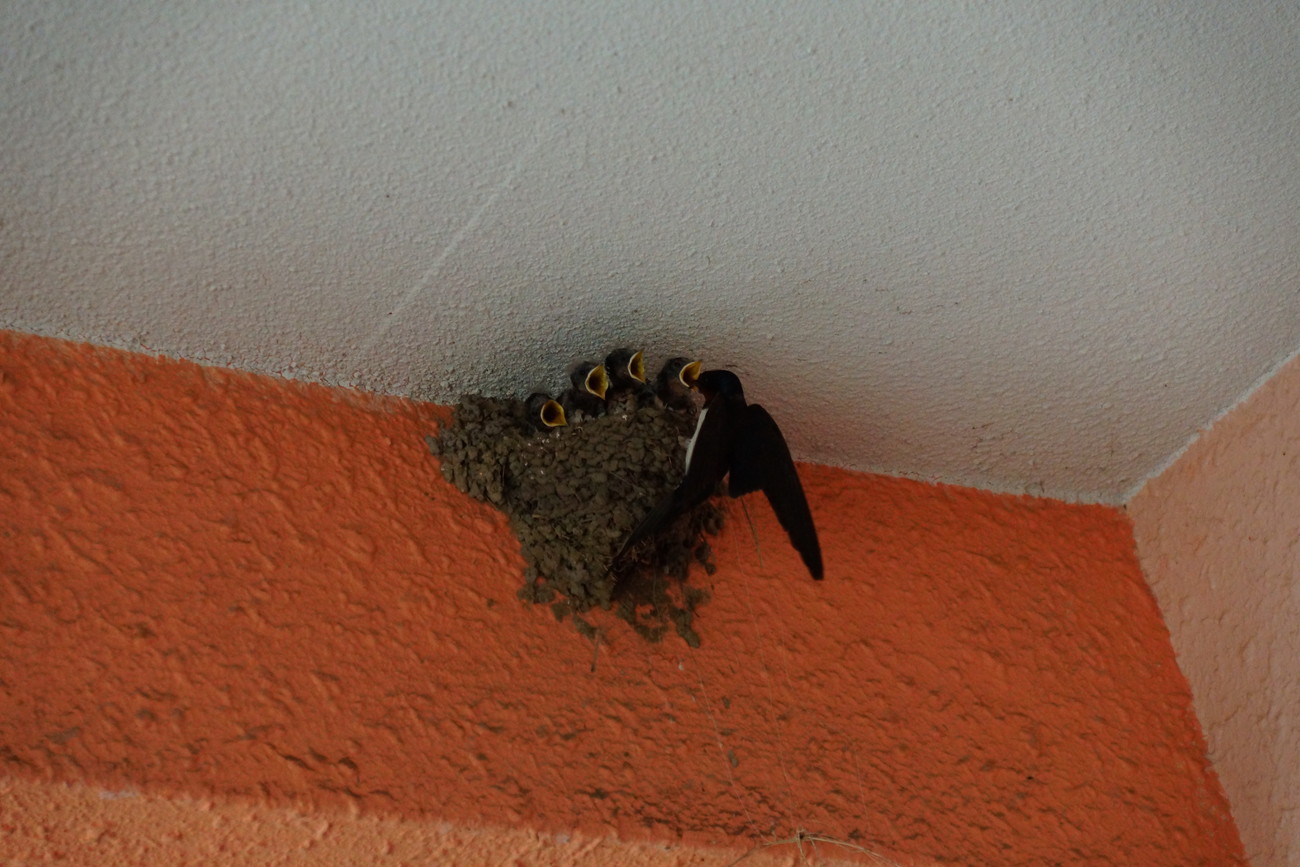廊下の上に作ってあったツバメの巣。こちらもずいぶんたくましくなってきたよ。