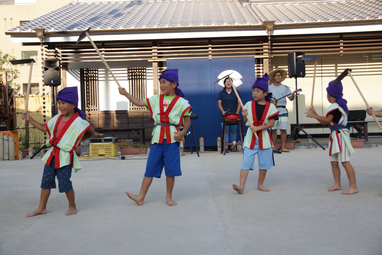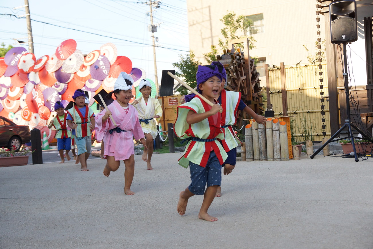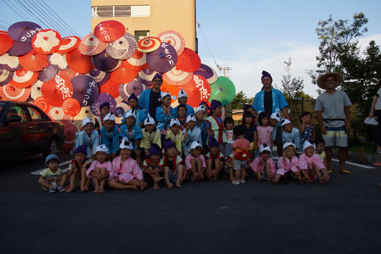 水祭りで踊りを踊ってほしいと頼まれ、年長さんと学童さんが沖縄の踊り、マミドーマを披露してきました。