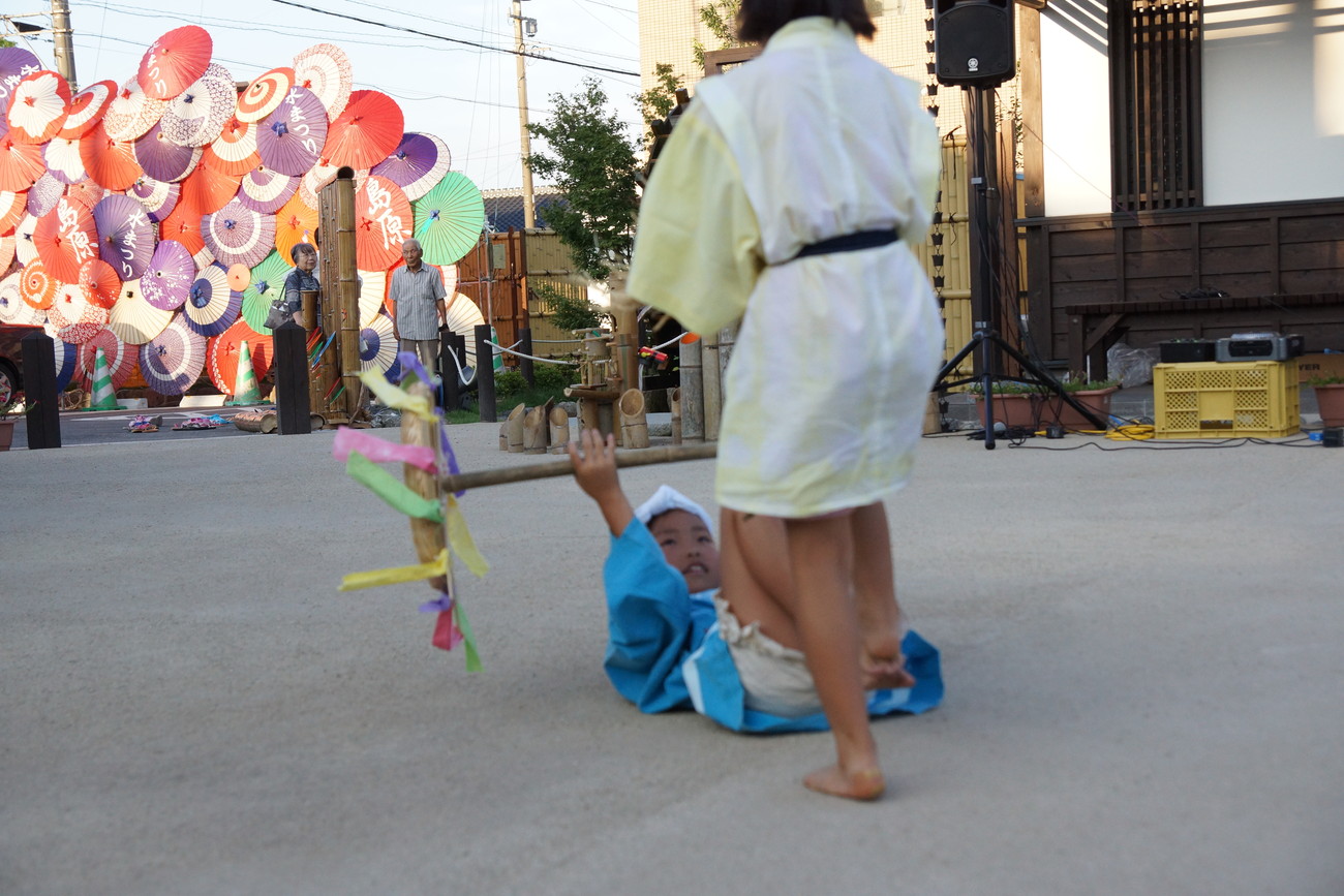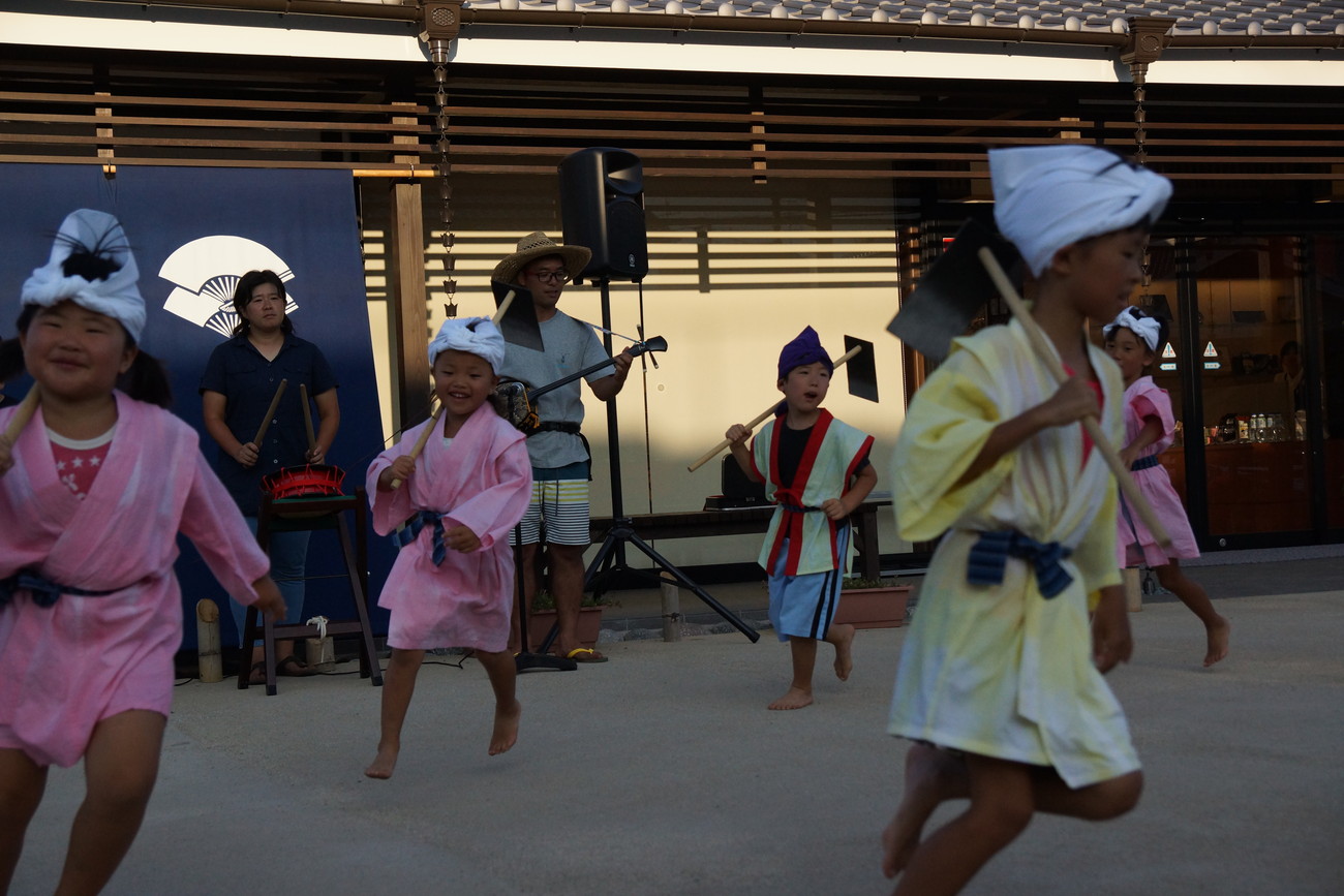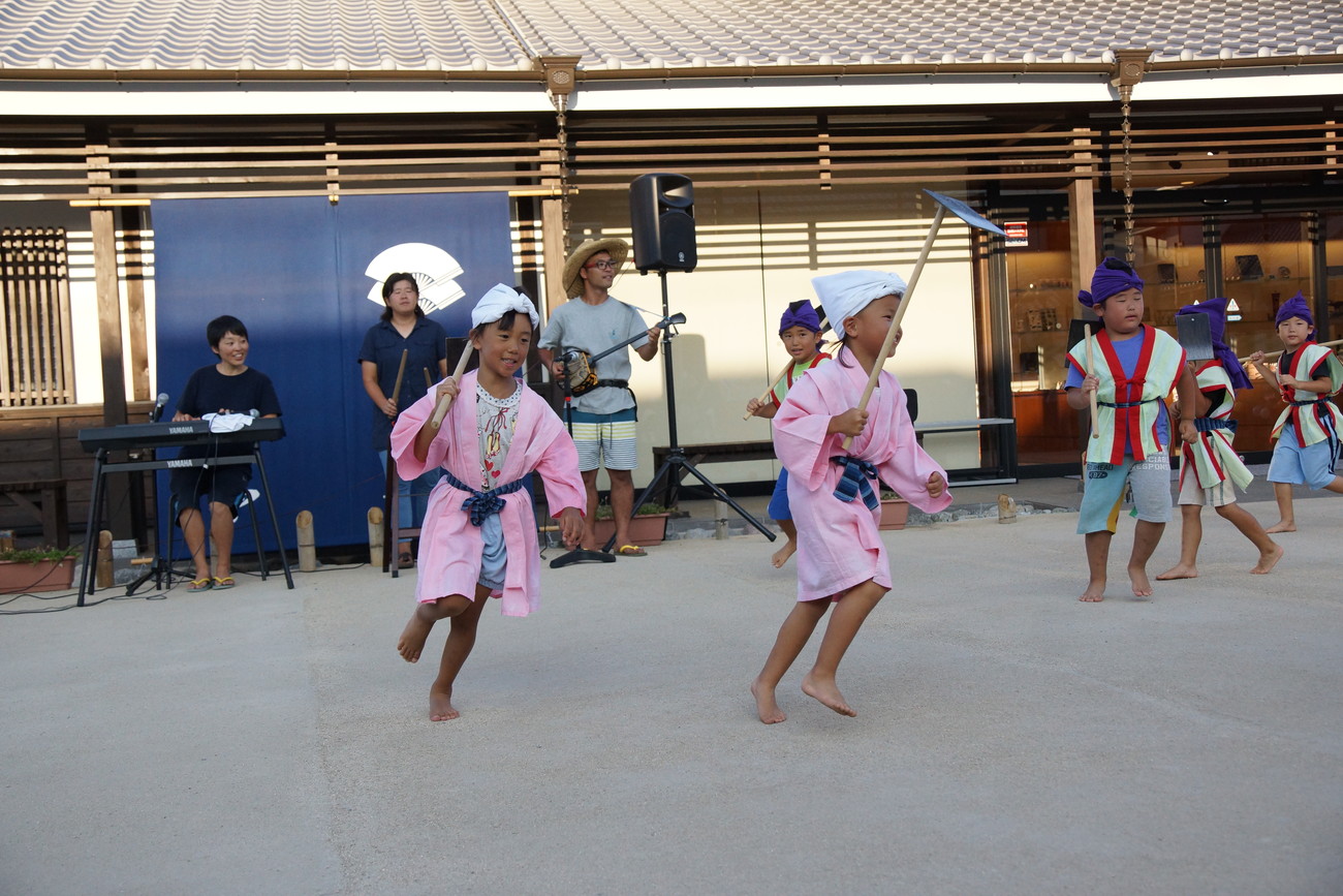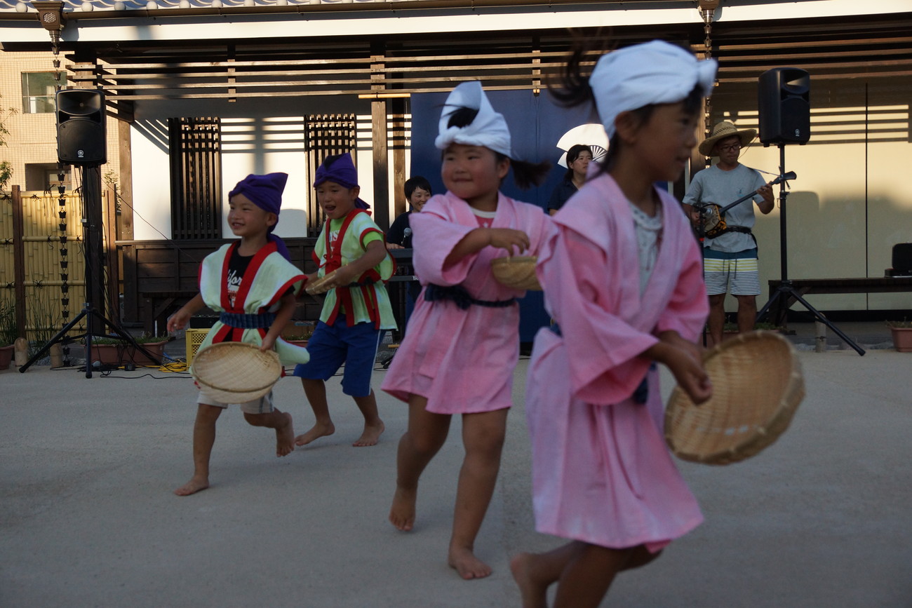 水祭りで踊りを踊ってほしいと頼まれ、年長さんと学童さんが沖縄の踊り、マミドーマを披露してきました。