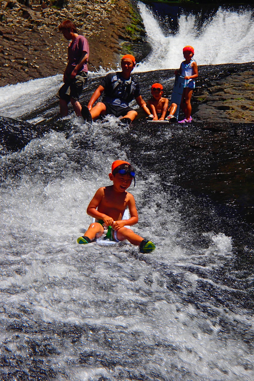 2日目のお楽しみは竜門の滝の滝すべり。どきどきするね~・・